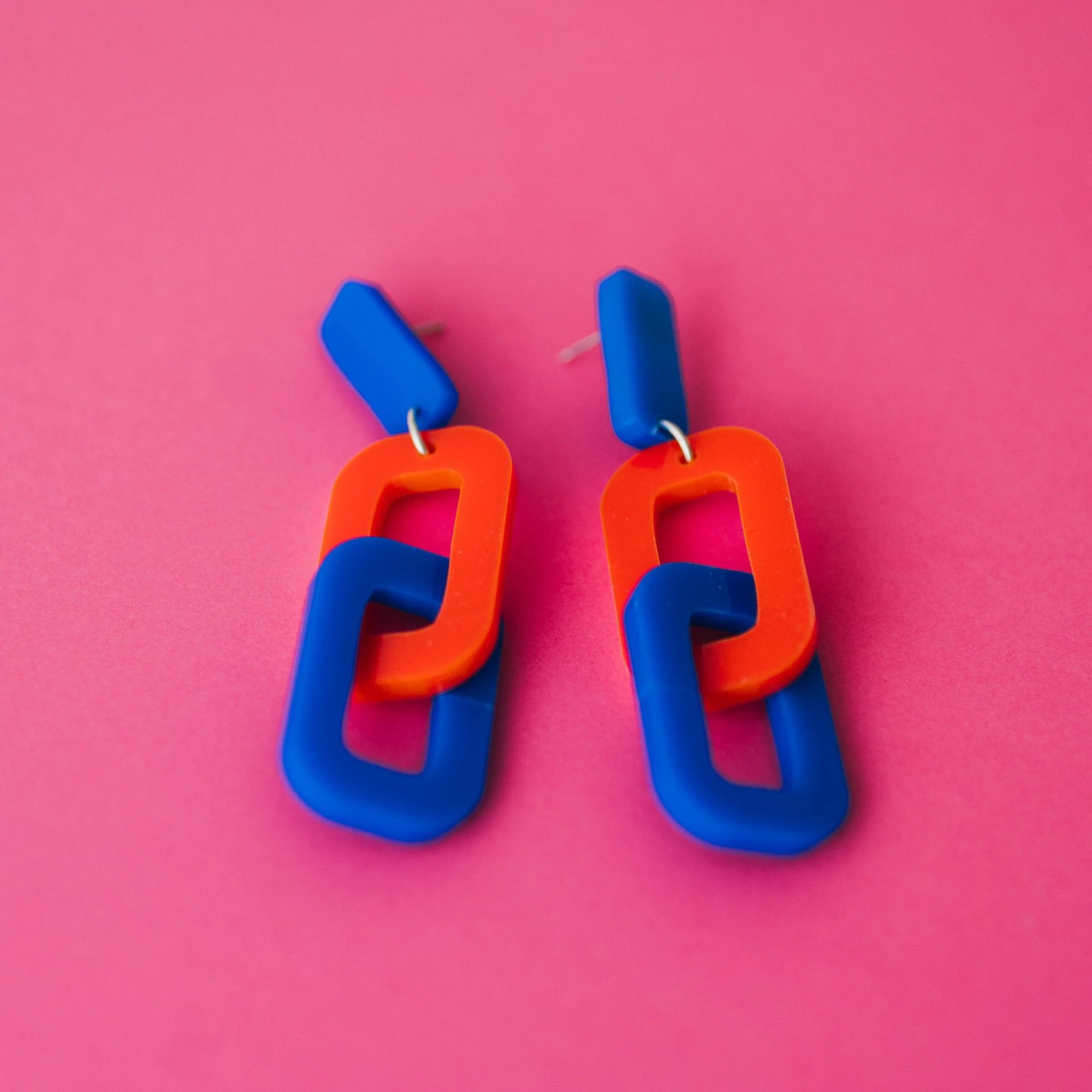 These acrylic chunky chain earrings are a mix and match of contrasting and tonal colours in a range of brights.