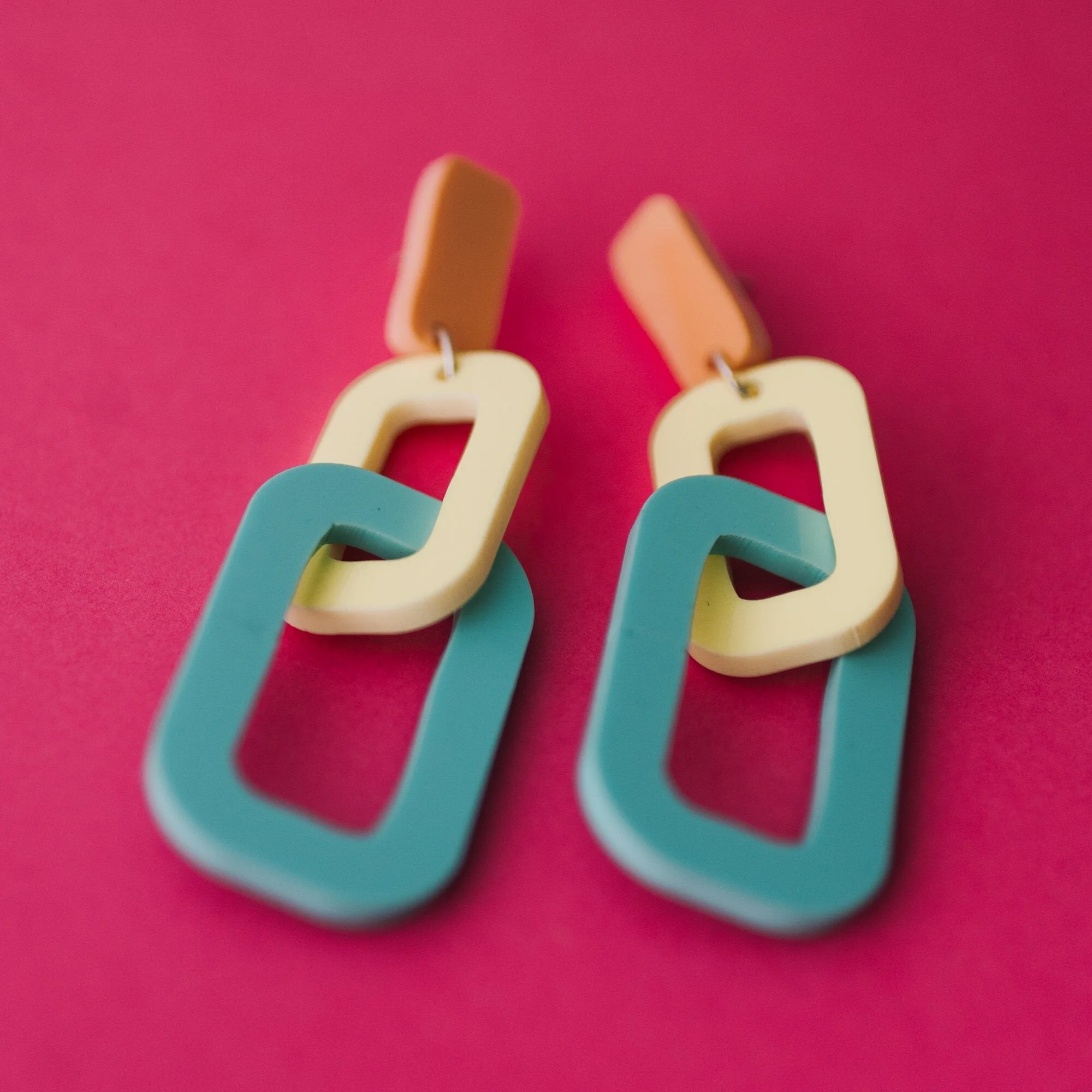 These acrylic chunky chain earrings are a mix and match of contrasting and tonal colours in a range of pastel combinations, with the occasional bright thrown in too.