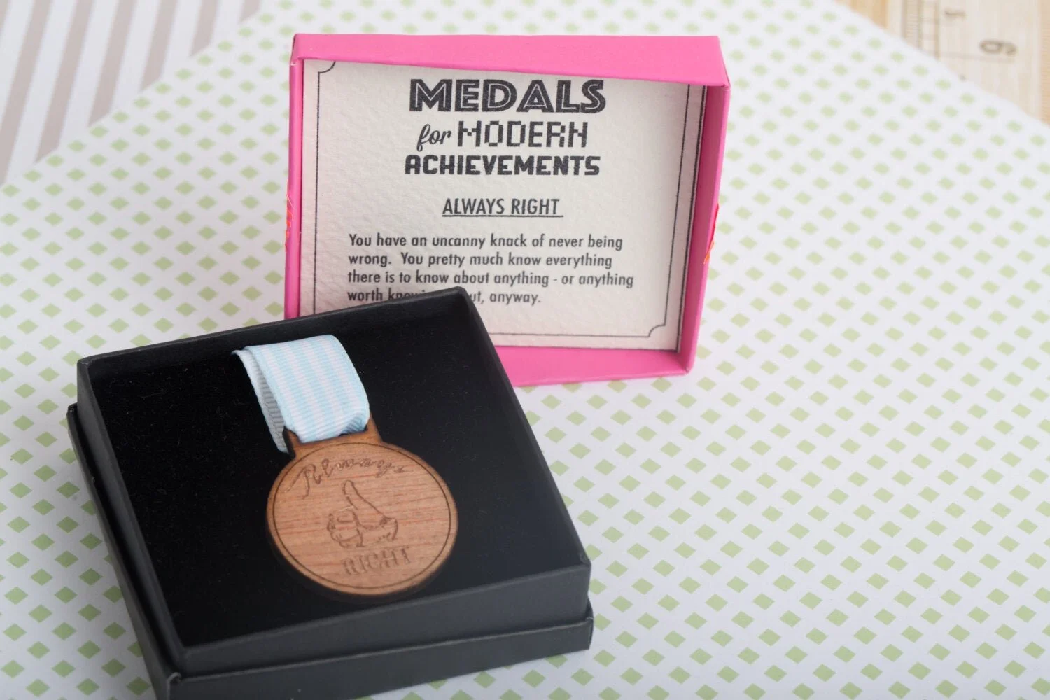 Our Medals for Modern Achievements celebrate the things we do in our every day lives that deserve attention, in this instance its the ability to never be wrong. This is perfect for those smug enough to give every answer in the pub quiz or tell you 'I told you so'.