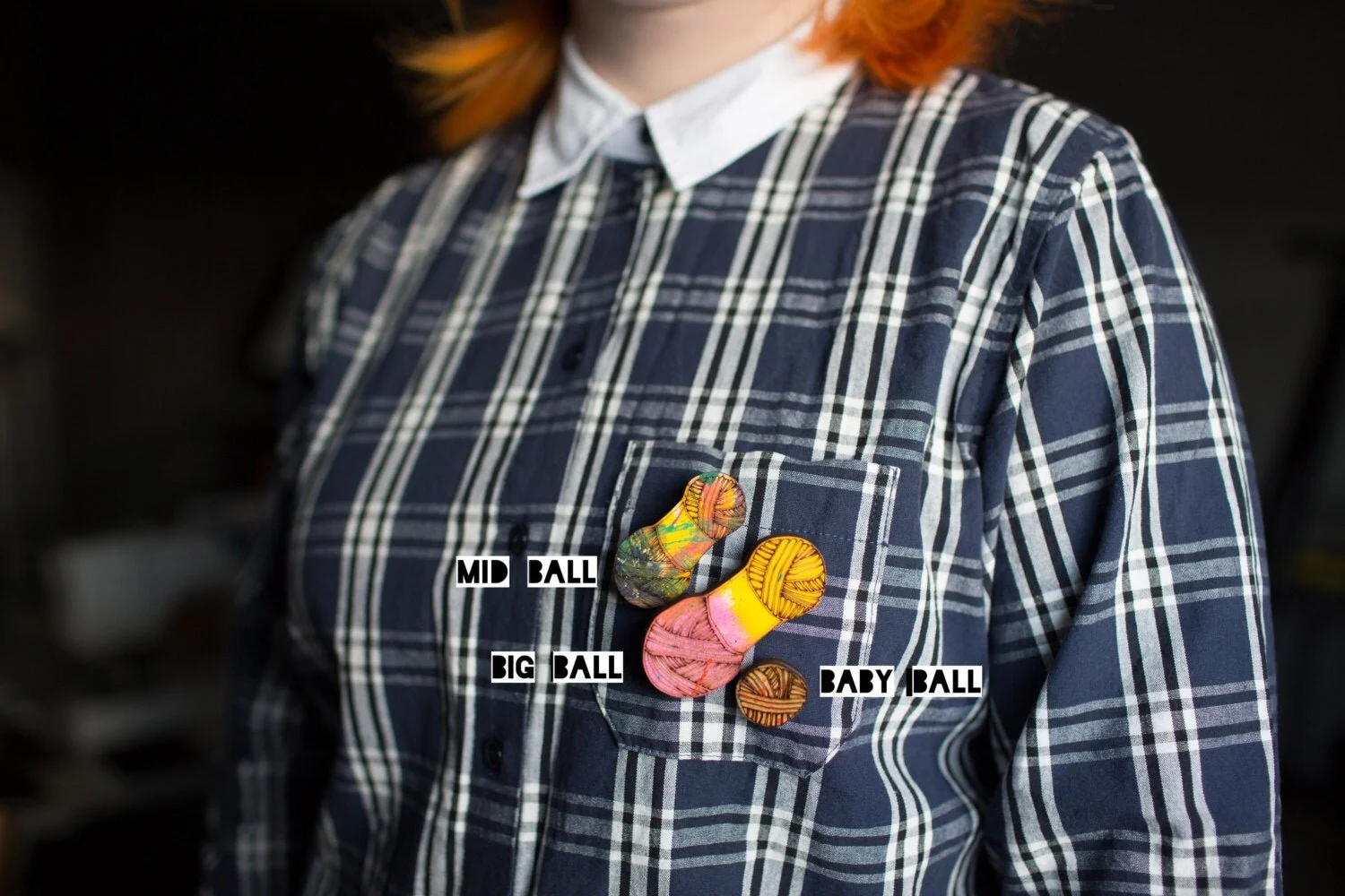 BABY BALLS (of yarn / wool) pin badge ~ laser cut brooch ~ knitting pin - craft - gift for crafters - ball of wool - crocheters - knitters