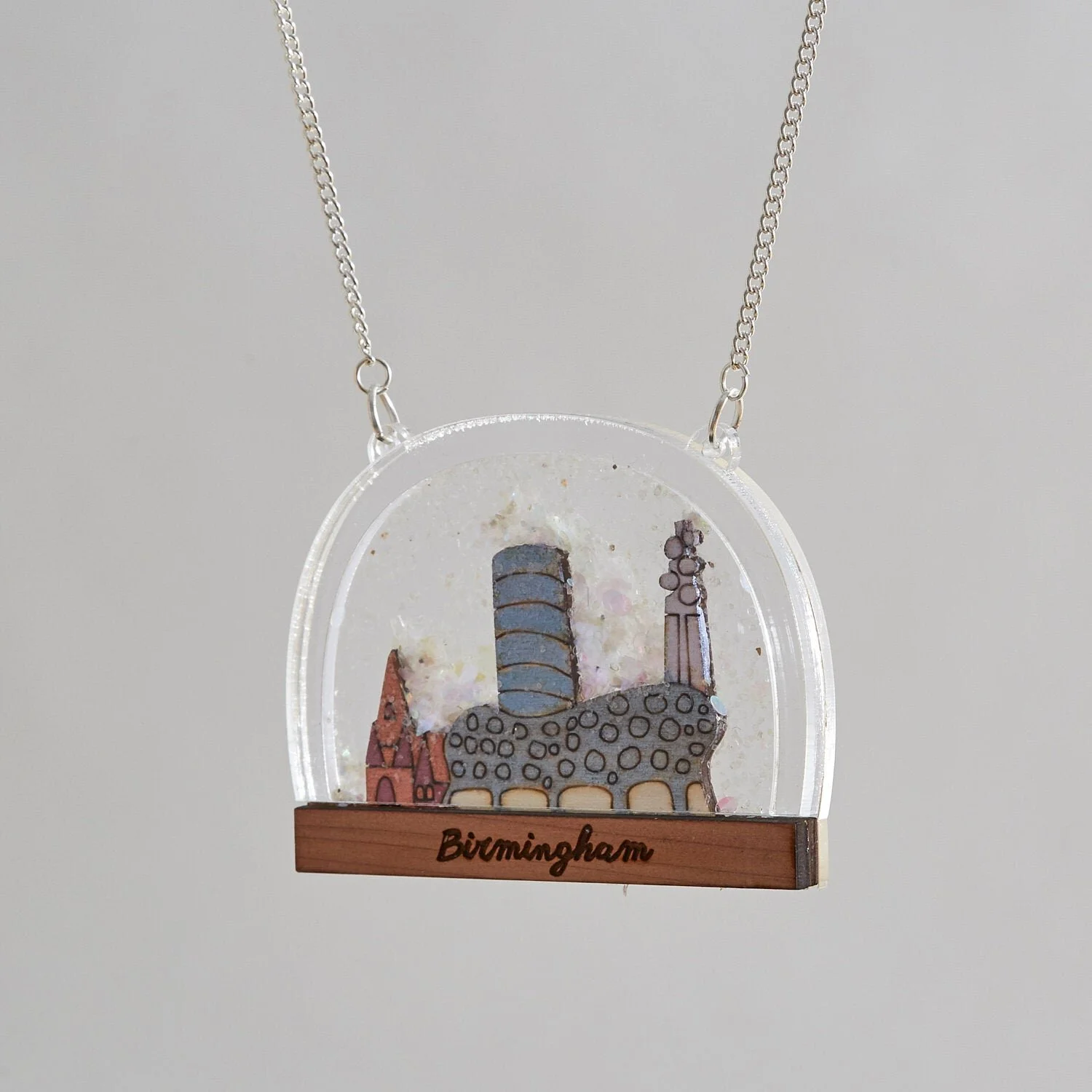 Birmimgham Snow Globe Necklace - Birmingham landmarks - Birmingham necklace - architecture - Brummie - skyline - snow globe jewellery