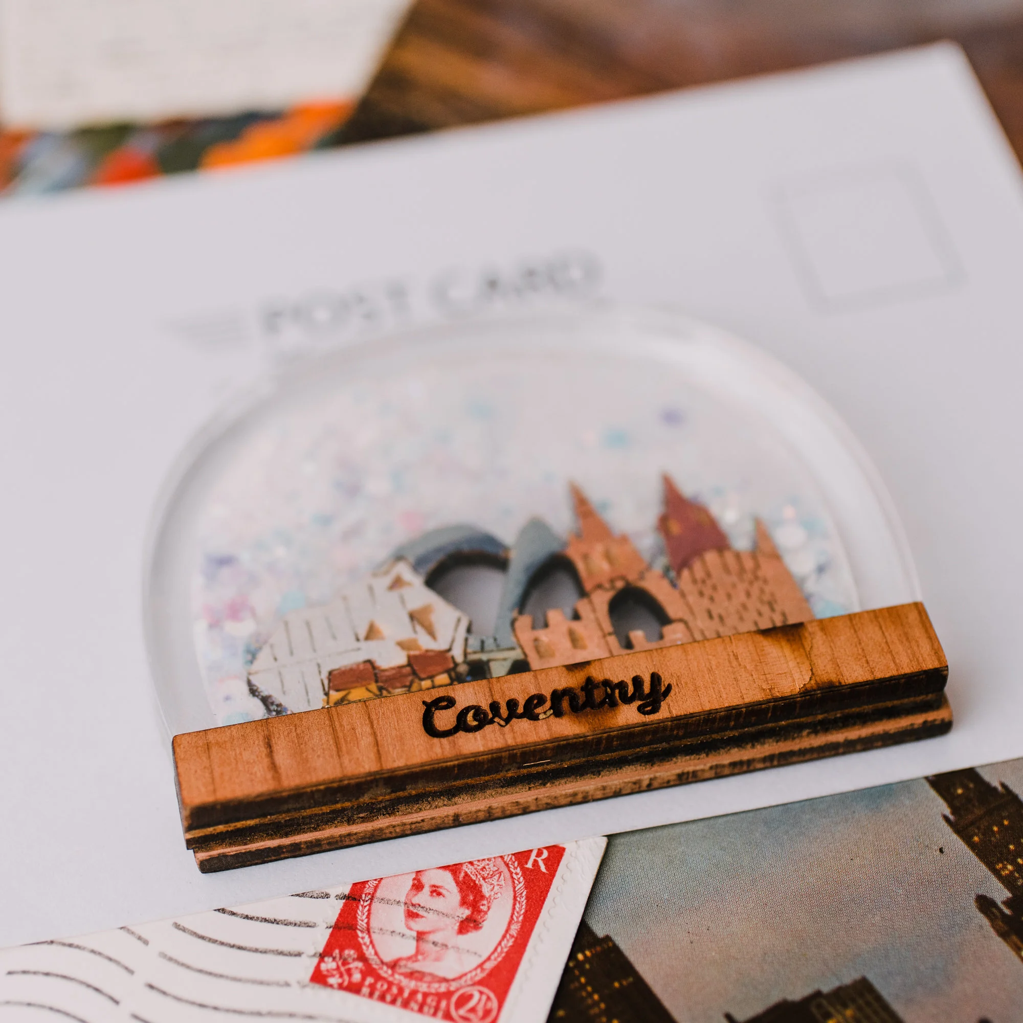 As my hometown and City of Culture for 2021 this snow globe necklace celebrates the city's architecture and skyline from it's bombed out heritage and 60's rebuild, you can spot the cathedral, the elephant and the motor museum bridge.