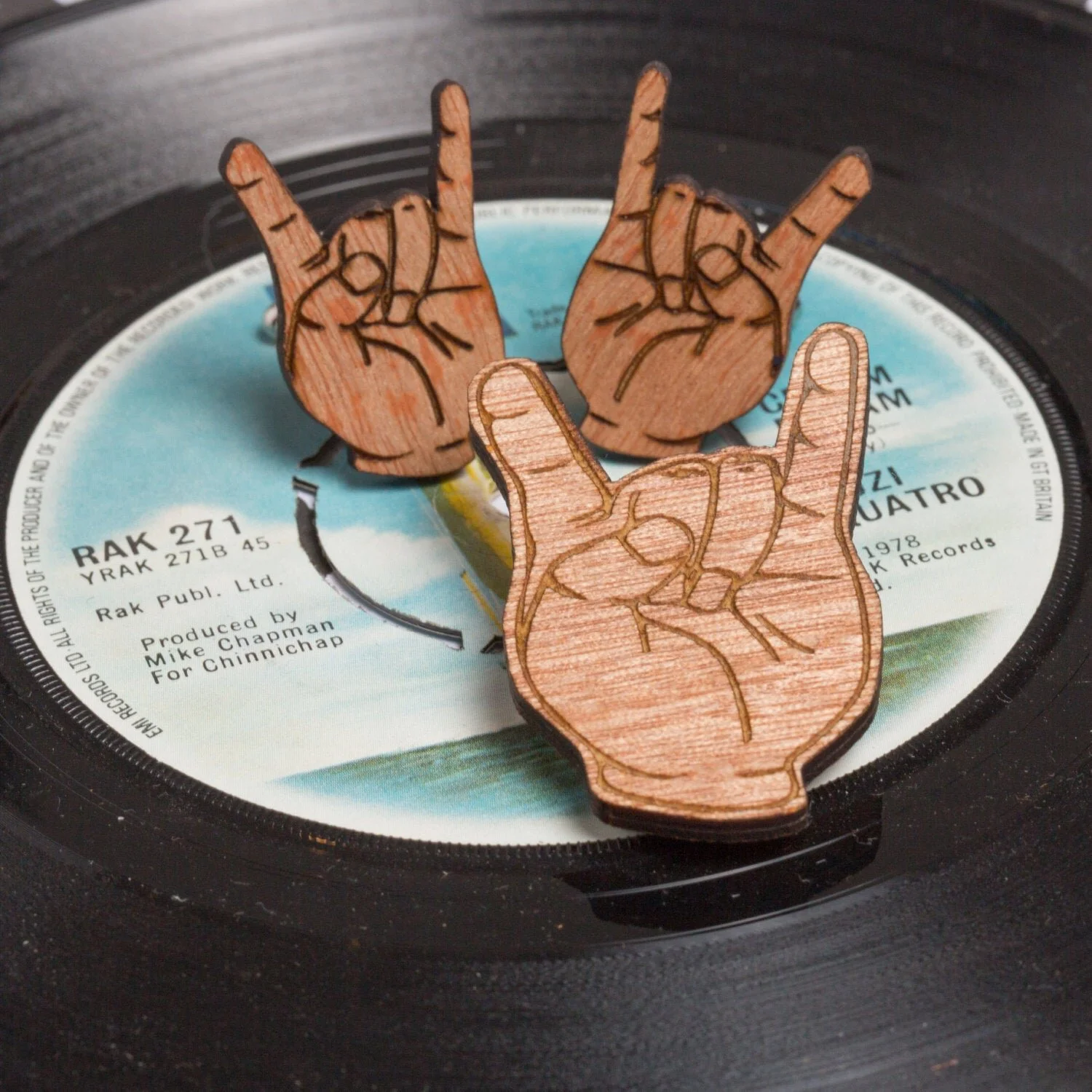 The wooden devil horn, hand cufflinks  are a perfect statement for rockers and music fans for that special occasion.