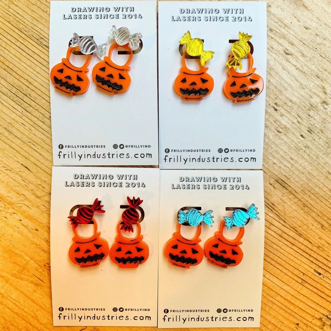 These Halloween candy pumpkin ear jackets are the perfect trick or treat statement earrings.