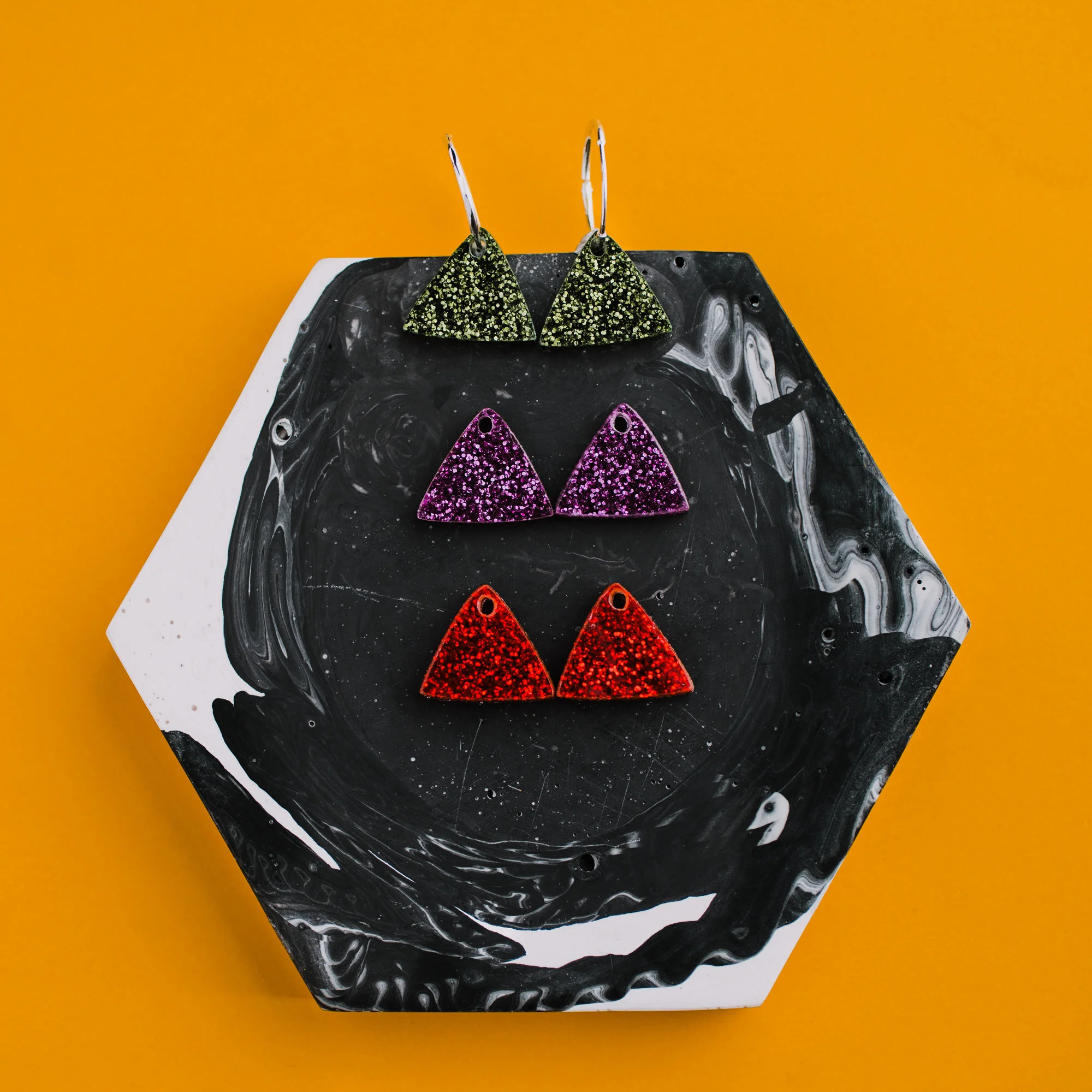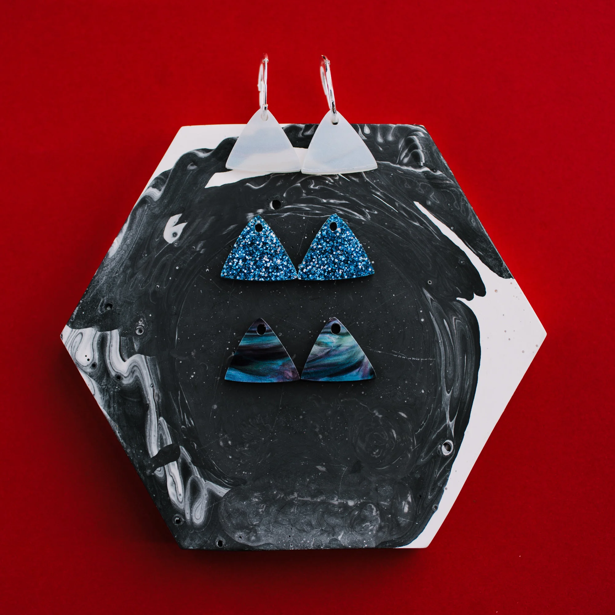 Interchangeable fancy acrylic triangle and hoop earrings - glitter acrylic, marble acrylic - mix and match earrings - sterling silver hoops