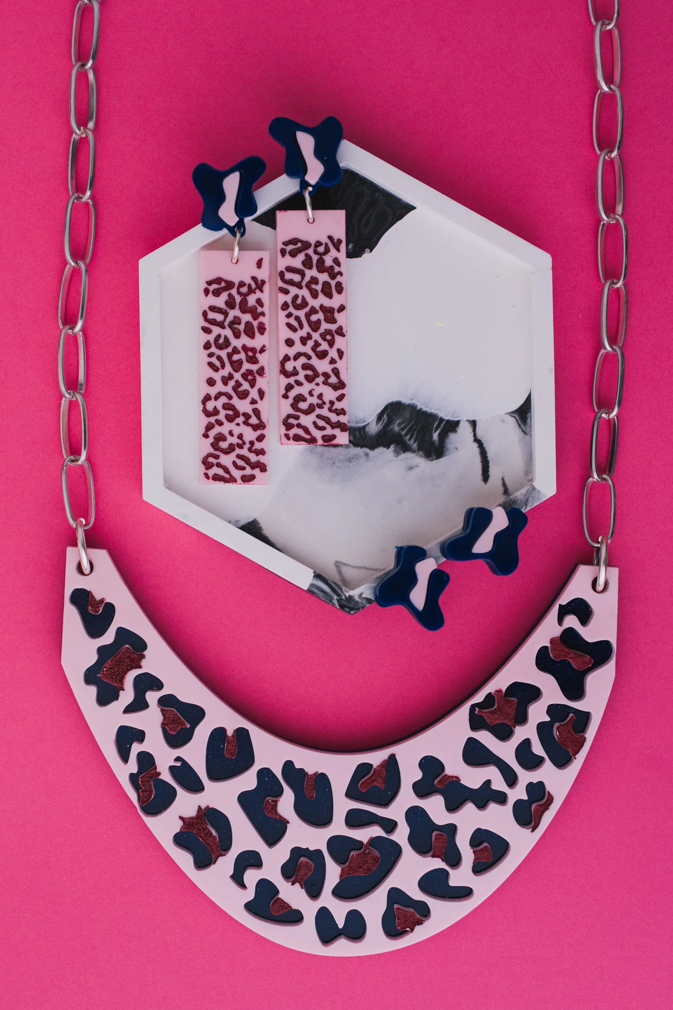 Leopard print stud earrings, animal print earrings, laser cut acrylic statement studs