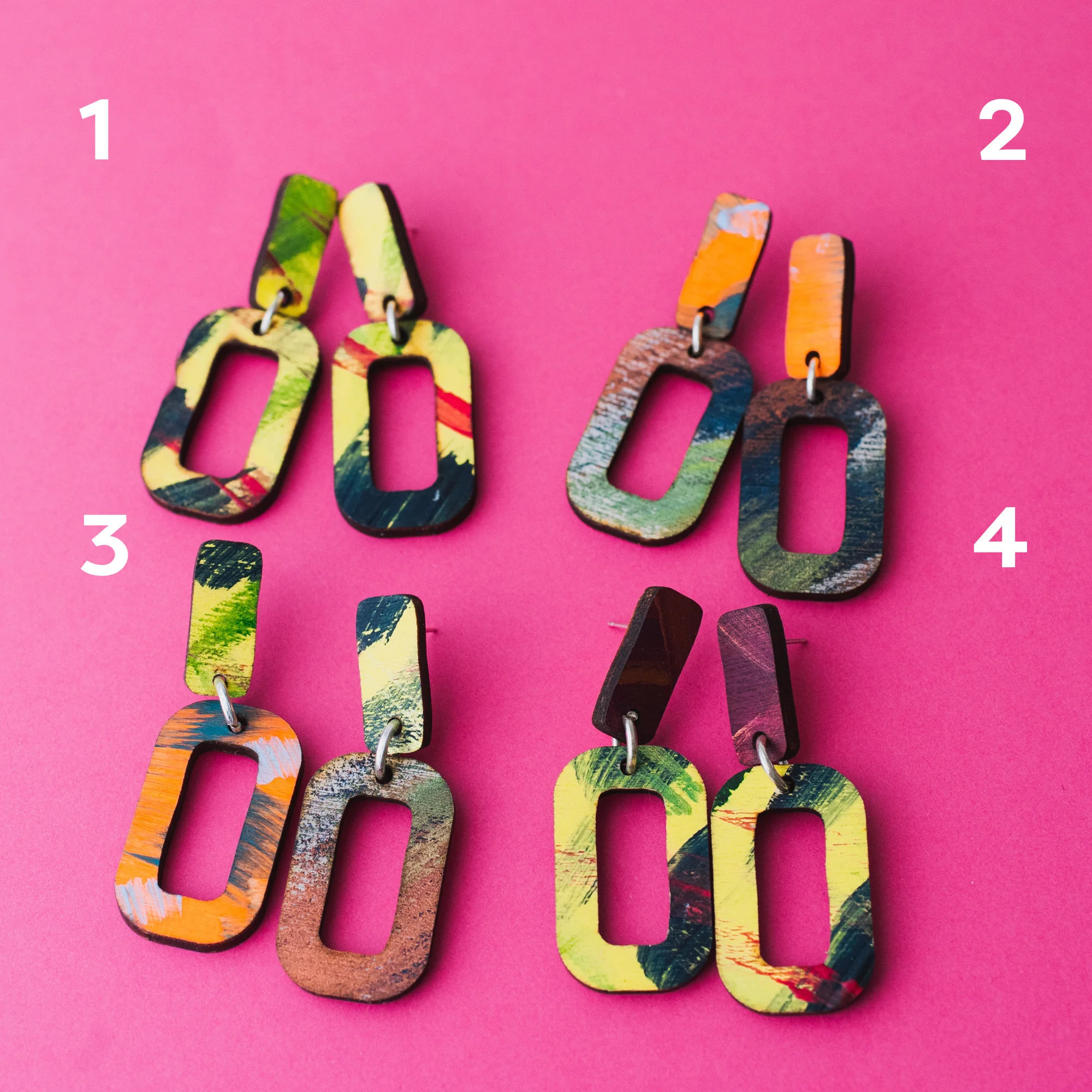 Painted Earrings - Statement brush stroked earrings- hand painted, one of a kind