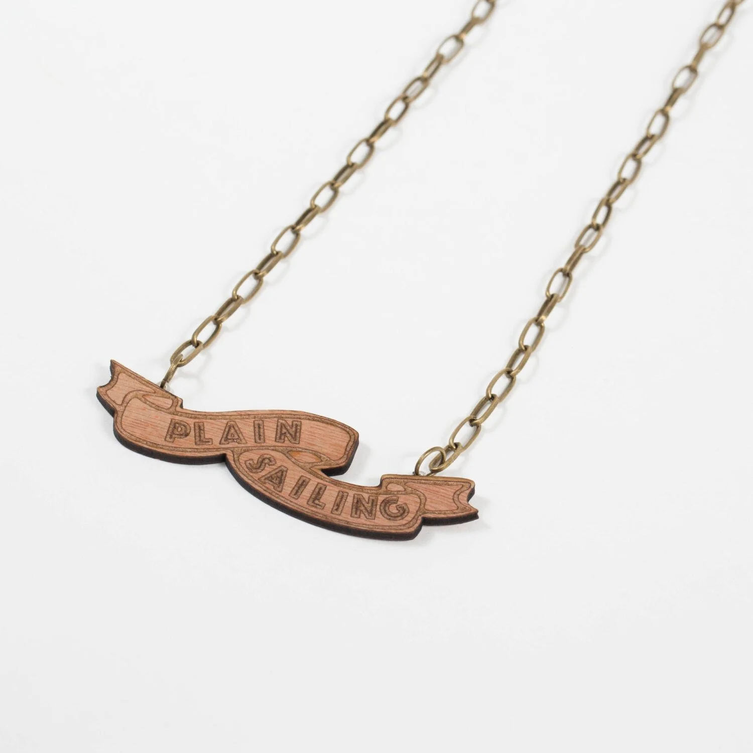 Plain Sailing Wooden Scroll Necklace - sea saying, sailor phrase, nautical, ship, sailing, boat