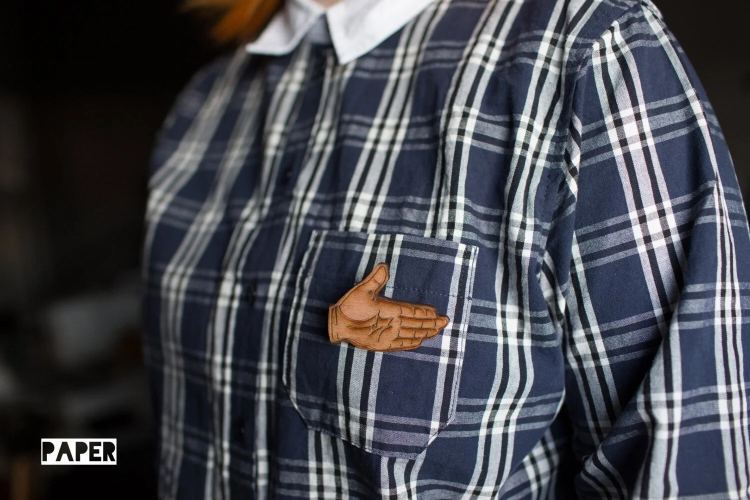 Rock, Paper, Scissors, Lizard, Spock ~ single wooden, hand brooch, for gamer and geek