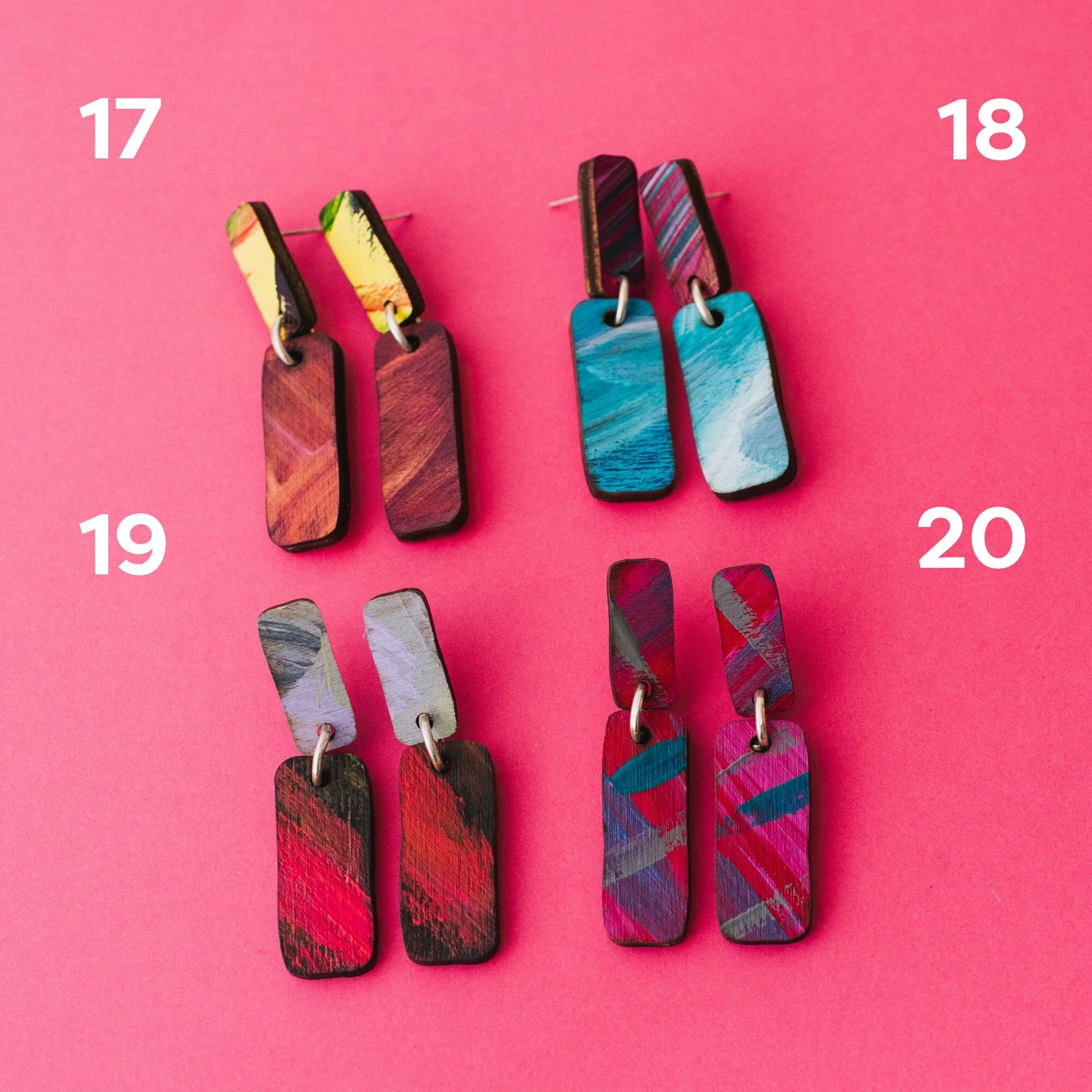 Painted Earrings - Statement brush stroked earrings- hand painted, one of a kind