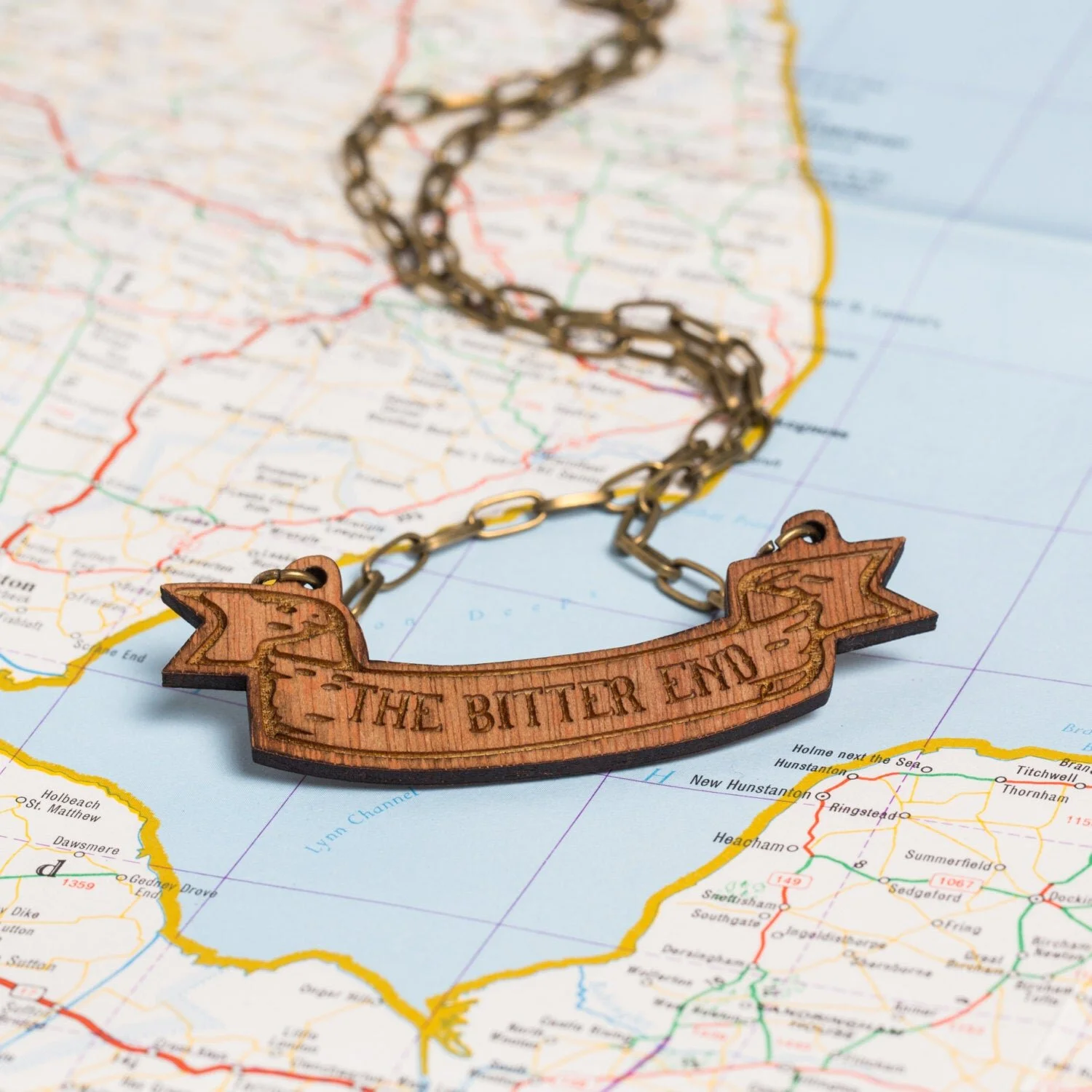 The Bitter End Wooden Scroll Necklace - sea saying, sailor phrase, nautical, ship, sailing, boat