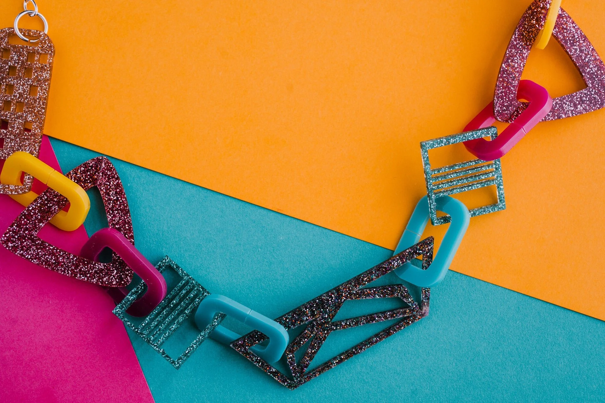 Acrylic chain necklace - Memphis Collection Pink, Teal, Yellow, Glitter Chunky Chain Statement necklace - laser cut acrylic jewellery