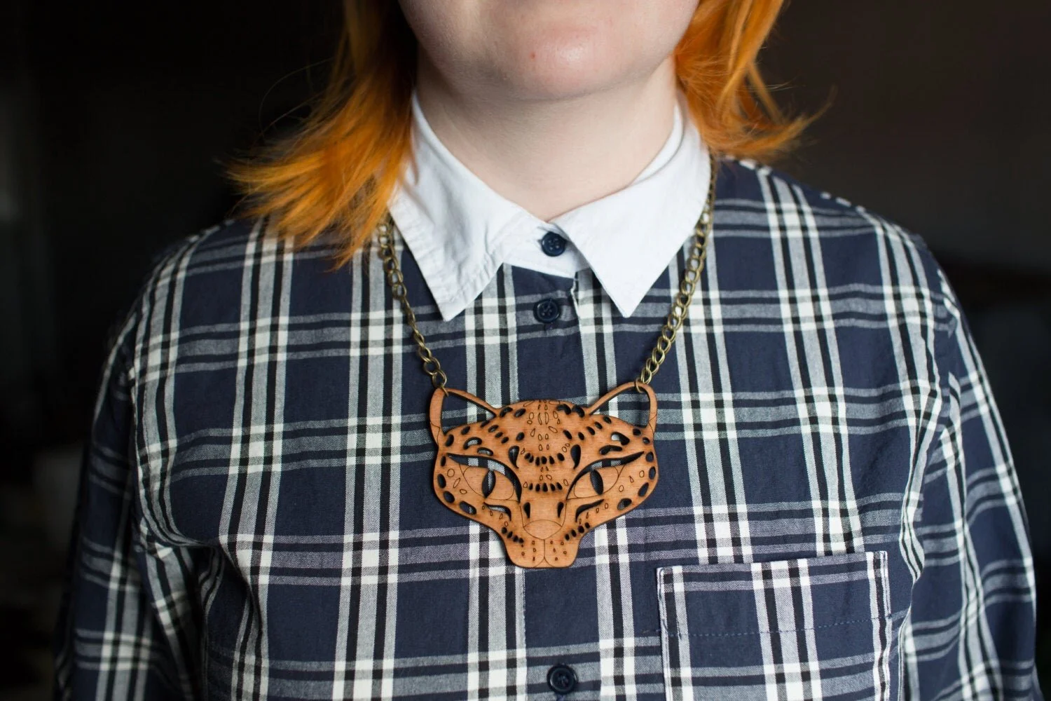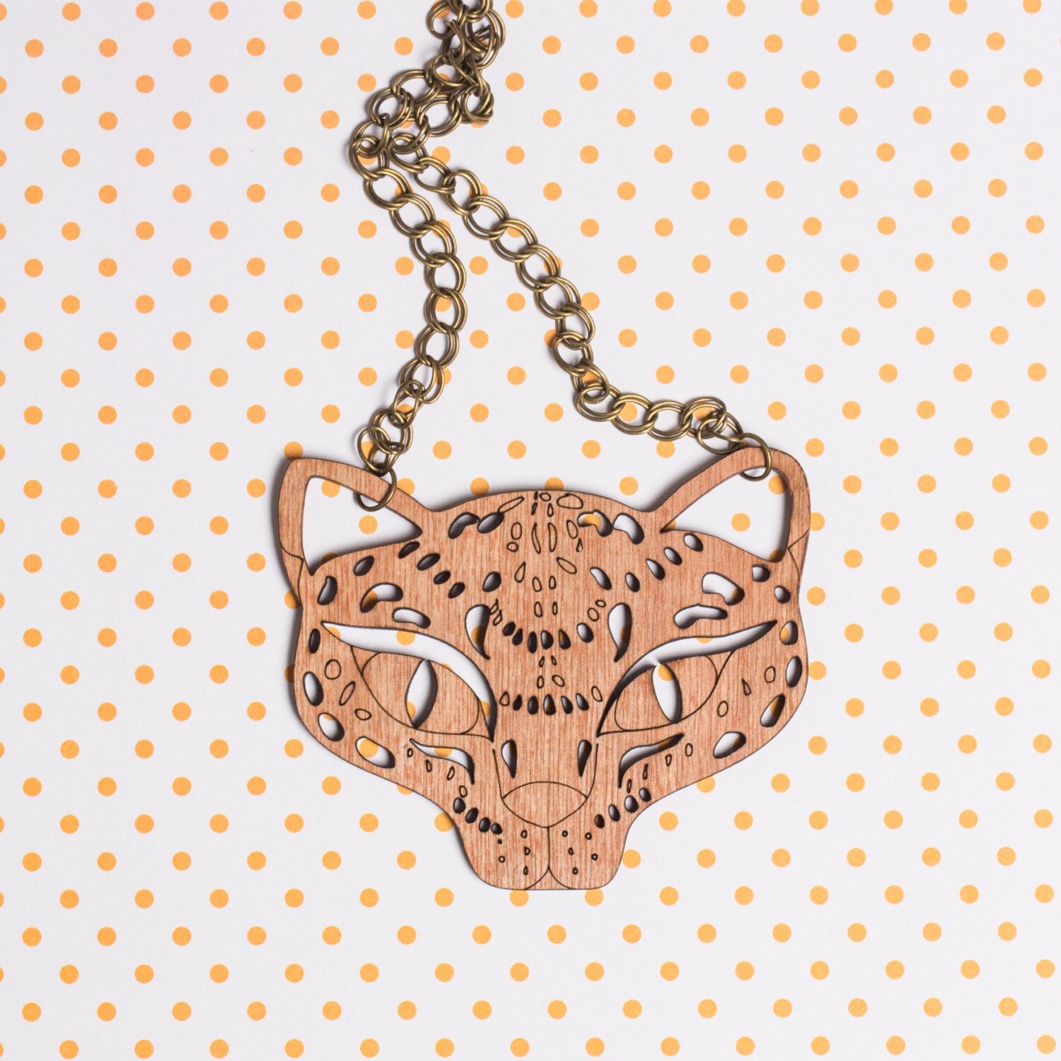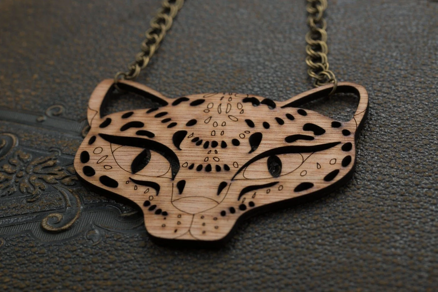 Big Cat Statement Leopard Necklace ~ wooden necklace ~ gift for cat lovers - wooden cat - crazy cat lady - leopard jewelry - cat jewelry