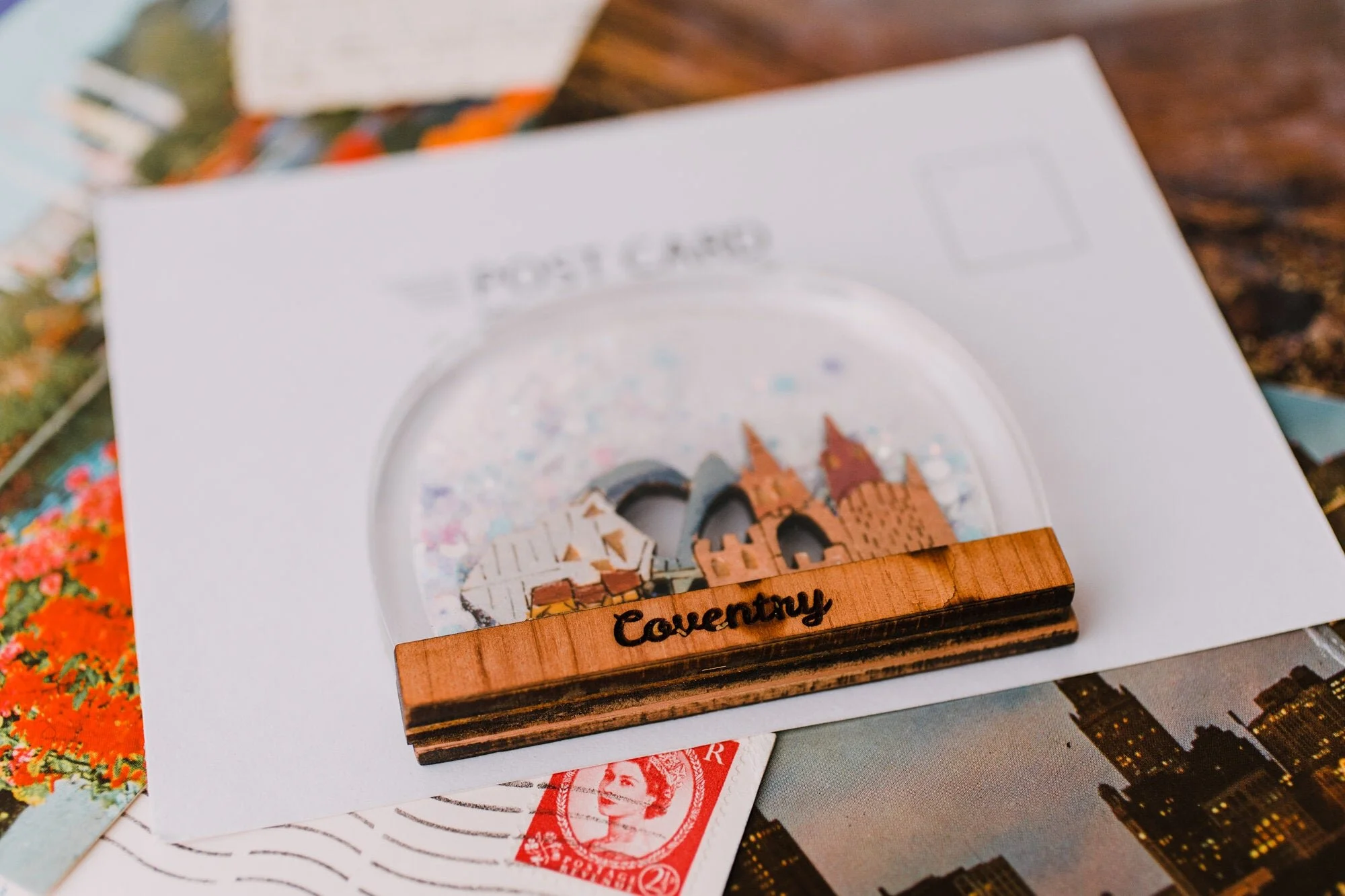 As my hometown and City of Culture for 2021 this snow globe necklace celebrates the city's architecture and skyline from it's bombed out heritage and 60's rebuild, you can spot the cathedral, the elephant and the motor museum bridge.