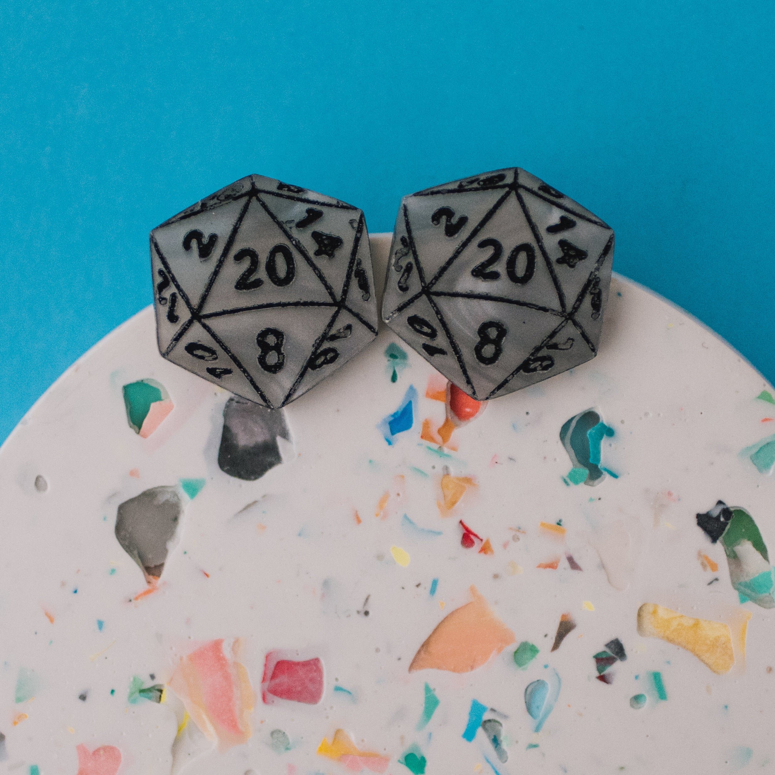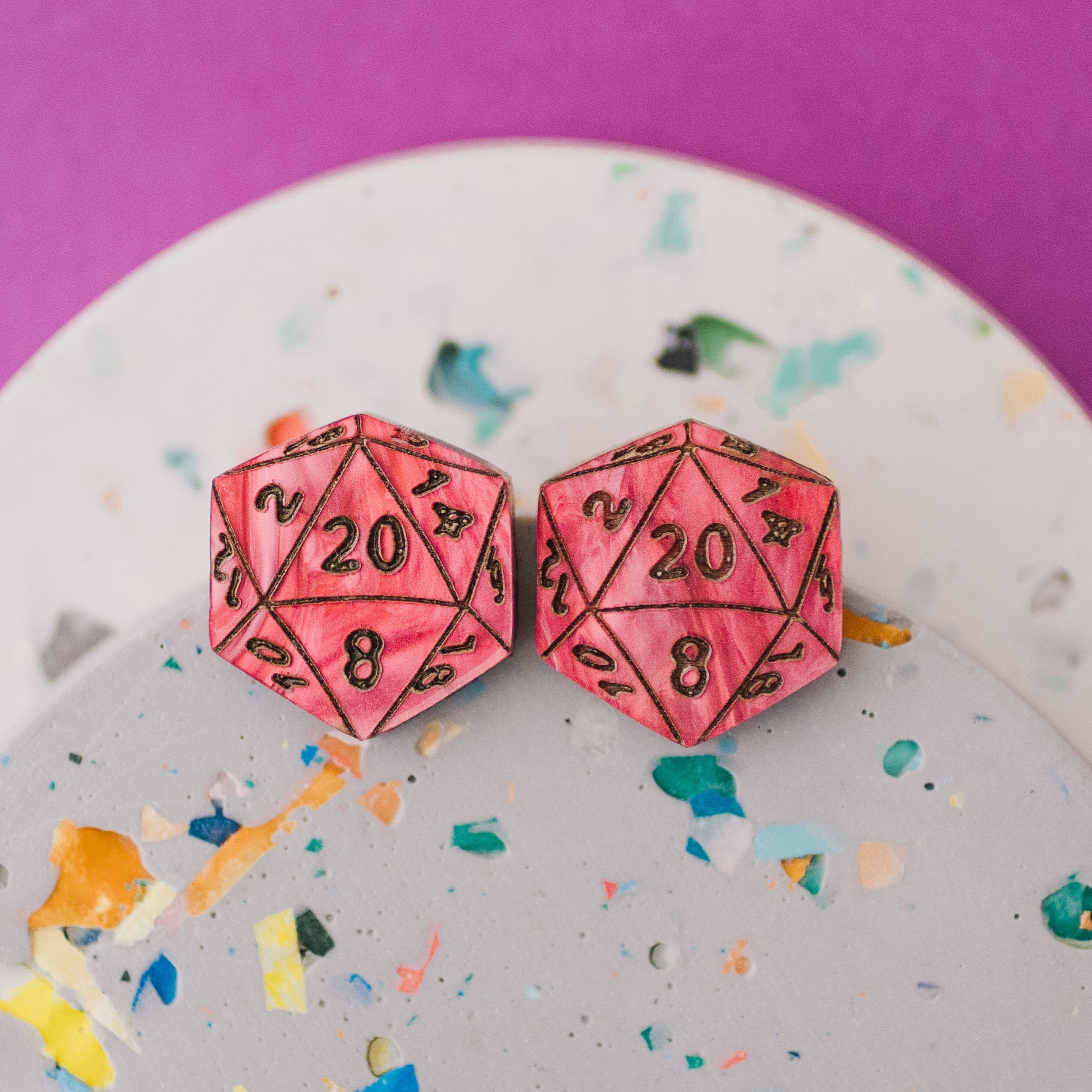 D20 Marble Acrylic stud earrings - Dungeon master jewellery, Gift for RPG lovers
