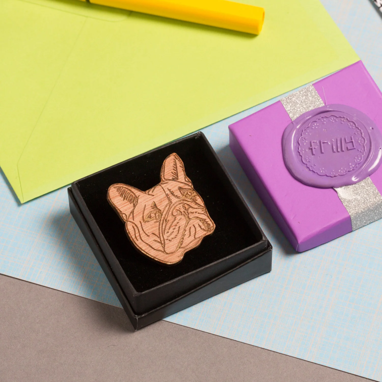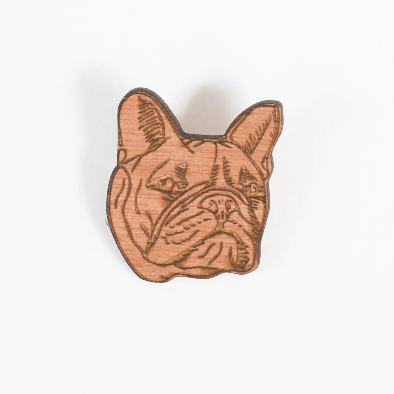 French Bulldog / Frenchie ~ wooden brooch / badge - gift for dog lovers