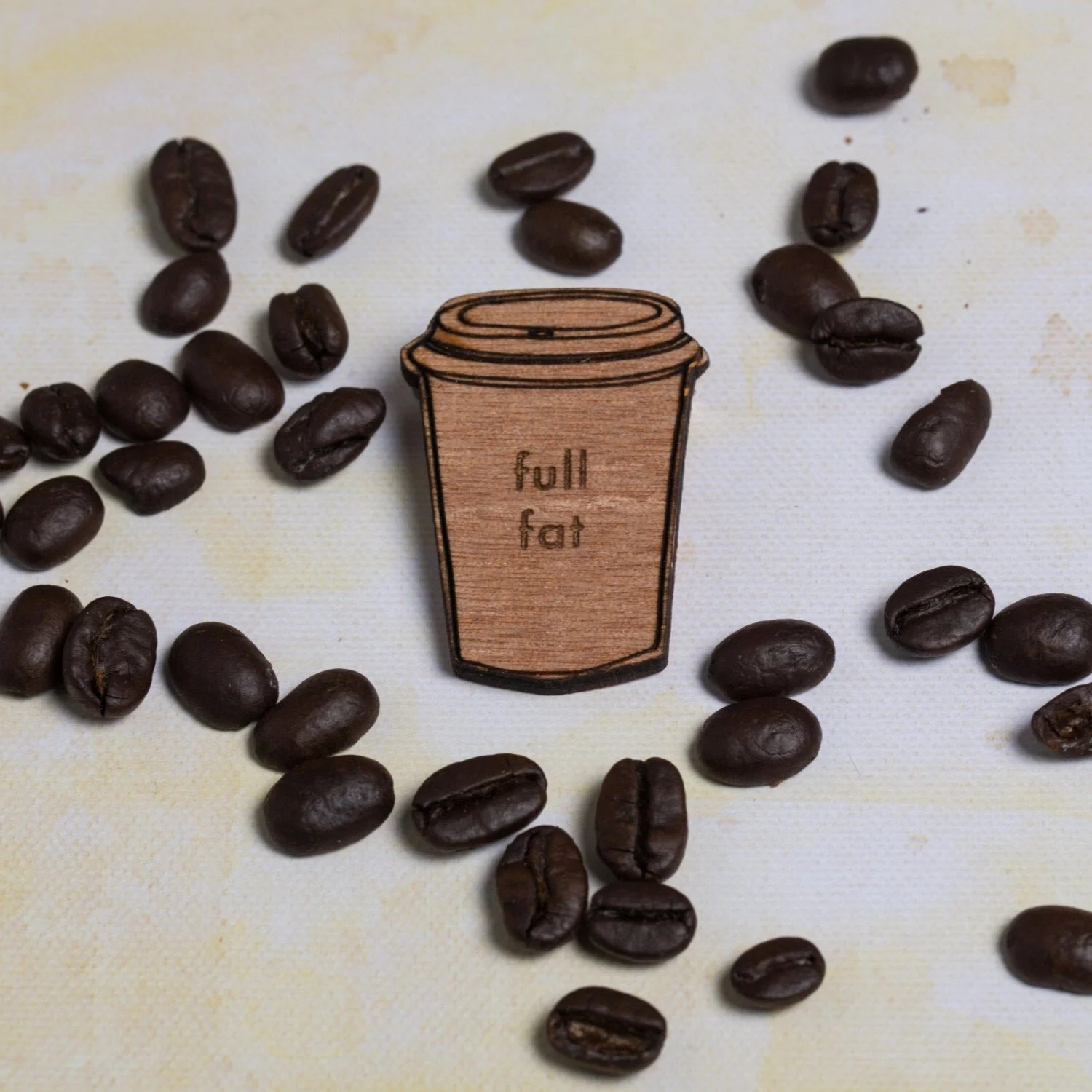 Full Fat COFFEE Cup pin badge/ brooch ~ for coffee addicts, snobs, coffee gift, coffee jewellery, coffee jewelry, quote
