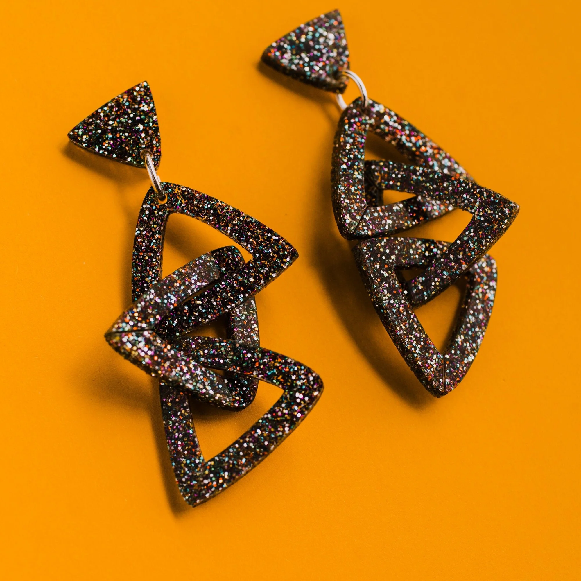 Glitter Triangle Dangly earrings triple triangle drops - laser cut acrylic jewellery
