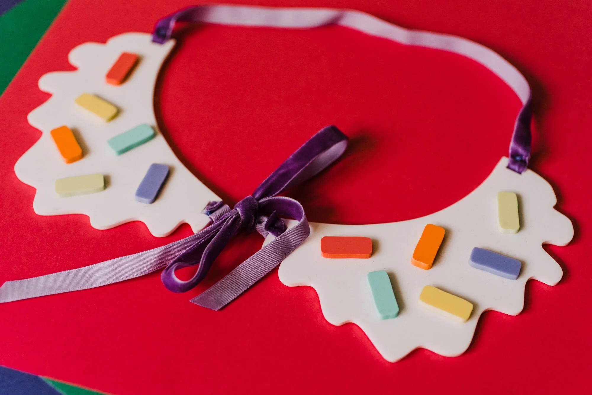 Kawaii icing bib collar necklace with sprinkles, laser cut acrylic necklace, statement necklace