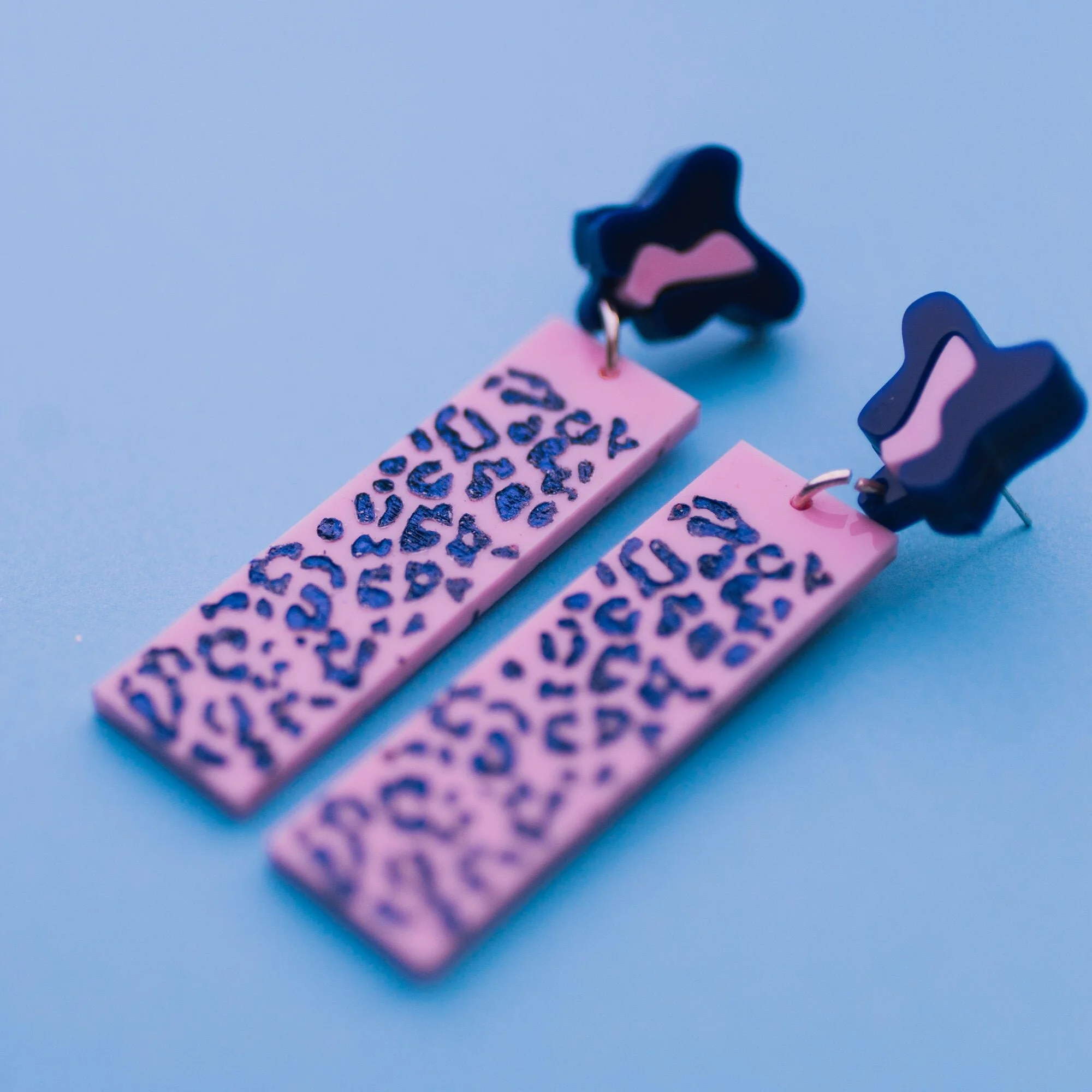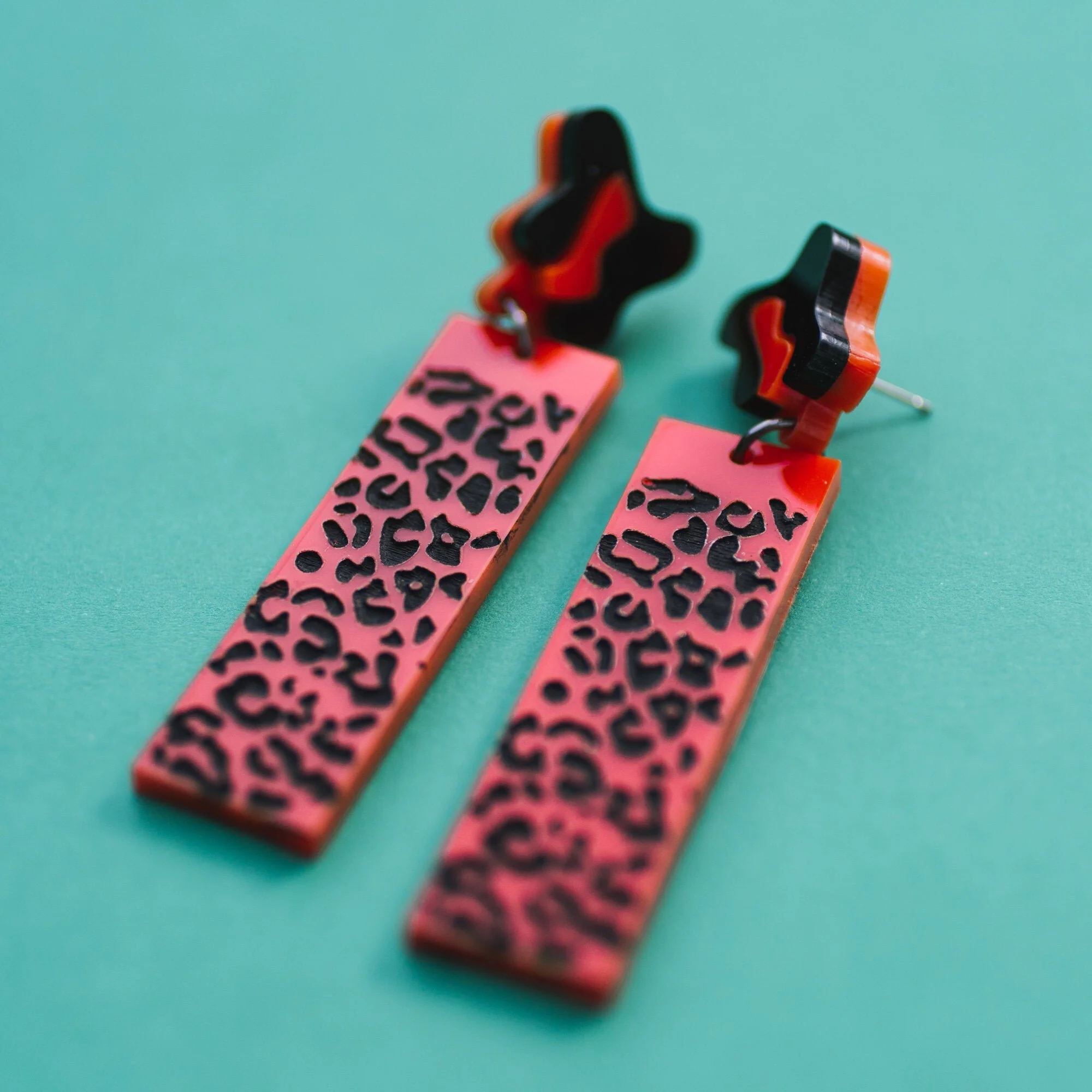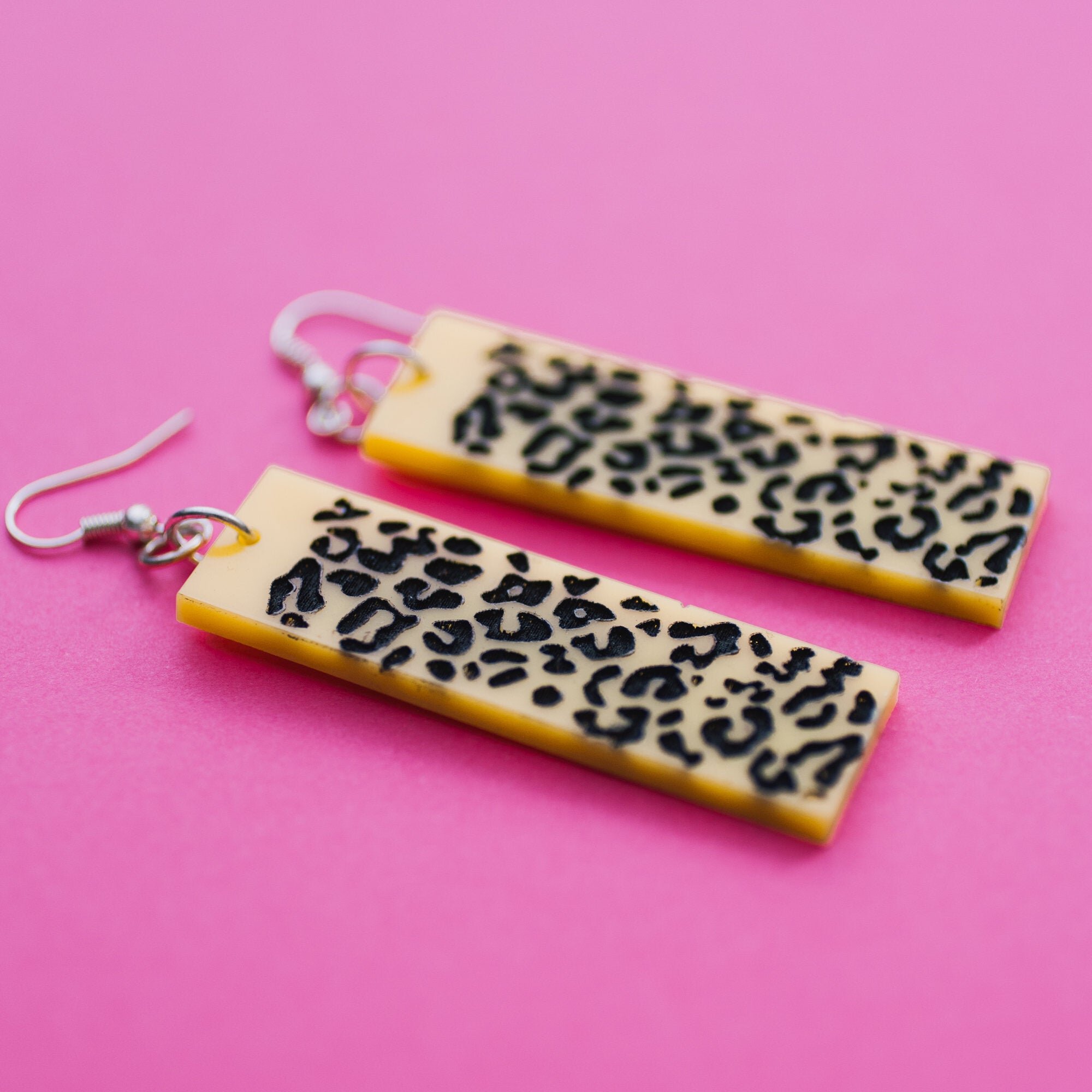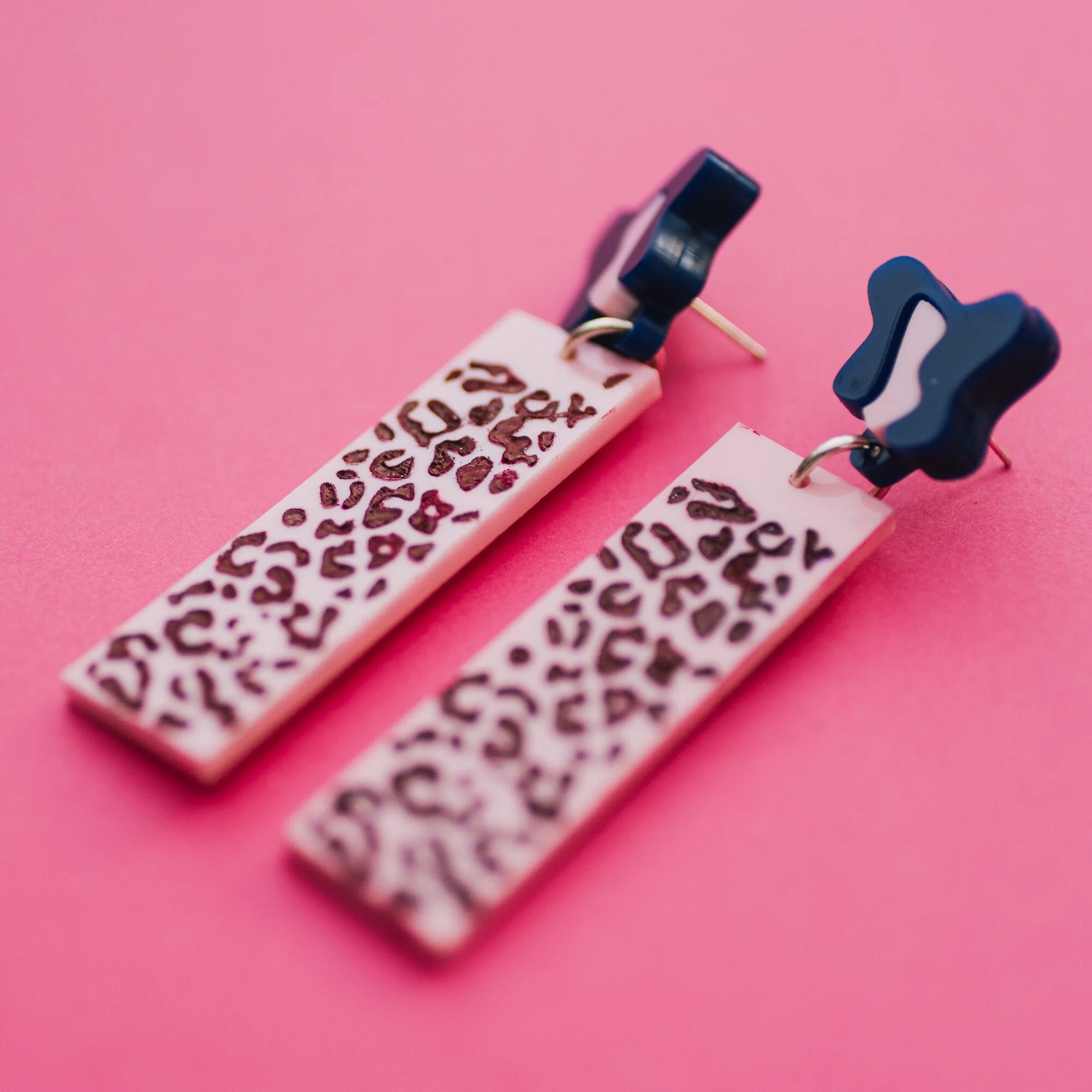 Leopard print dangly earrings, animal print earrings, laser cut acrylic statement studs