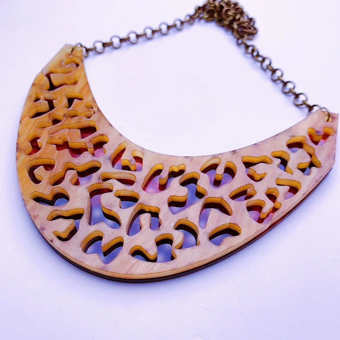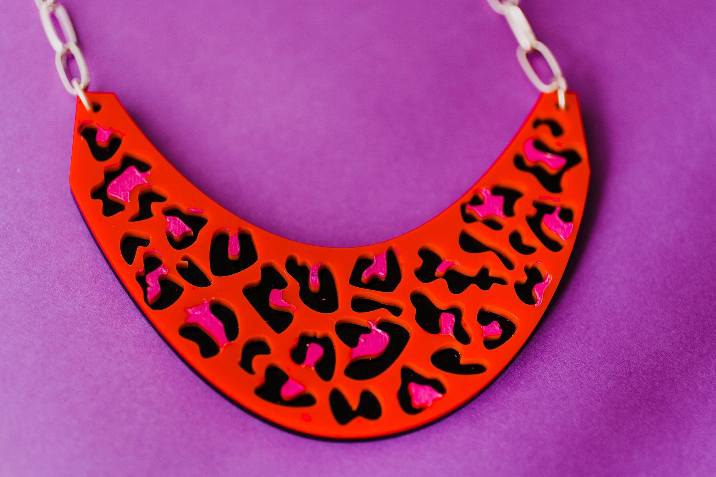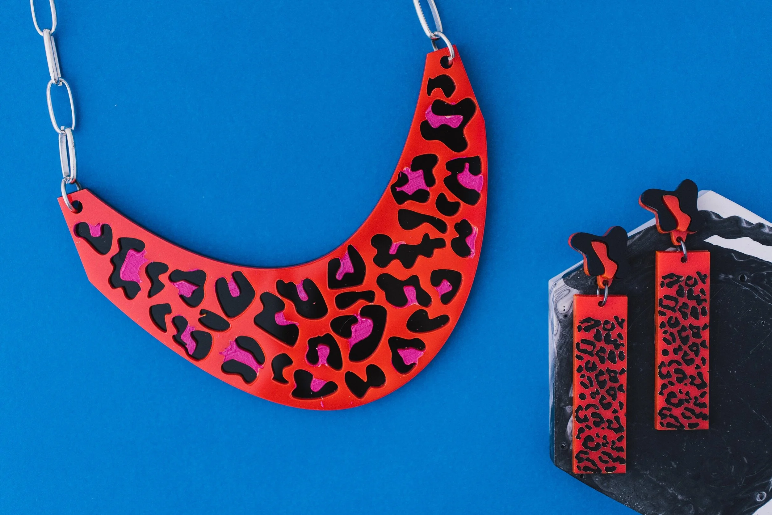 Leopard print necklace, animal print necklace, laser cut acrylic necklace, statement necklace