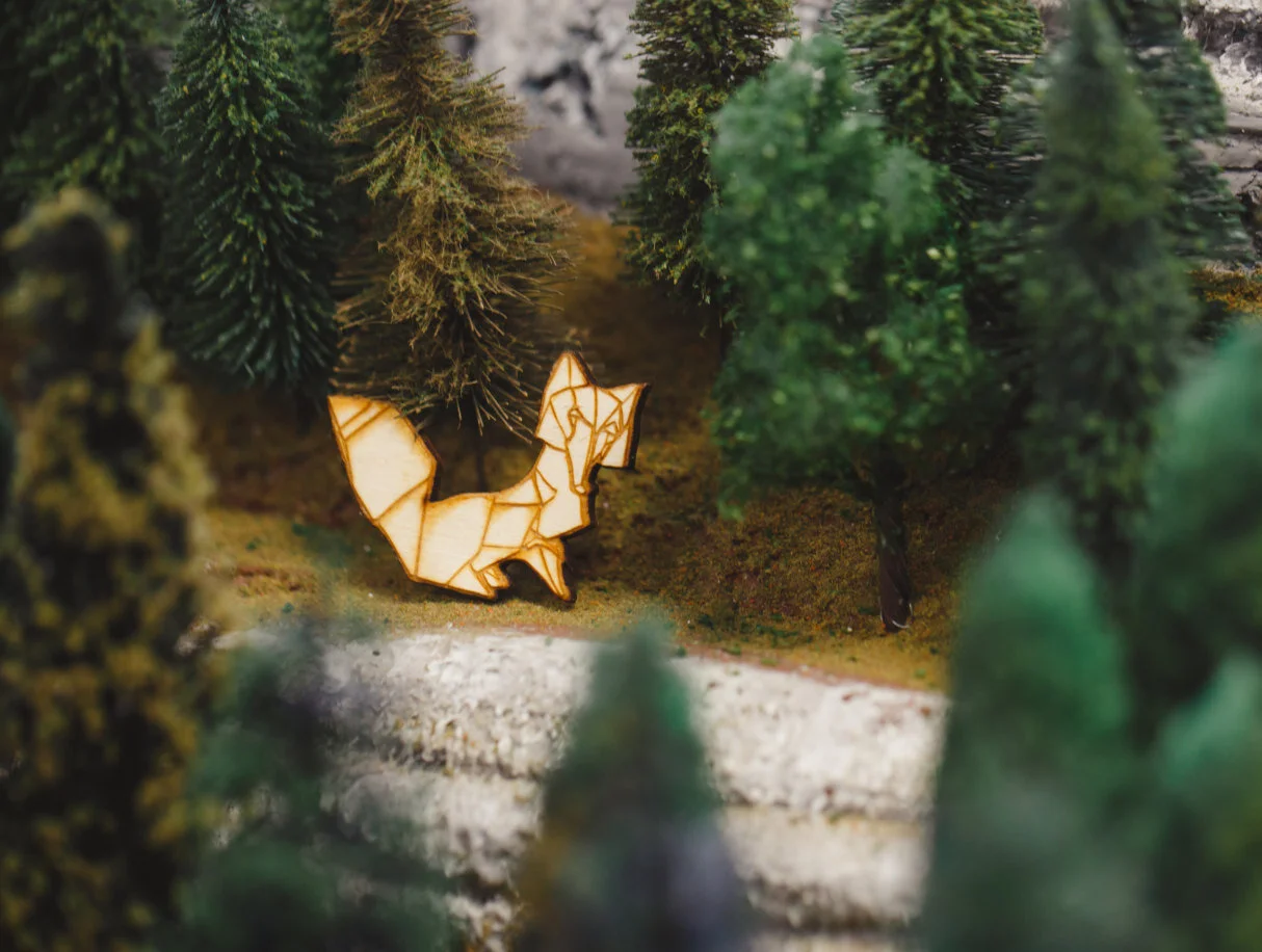 Our Fox is cut from FSC certified birch plywood which means the woodlands and forests are sustainably managed, no deforestation was undertaken to make this brooch. It is finished with a matt varnish sealant.