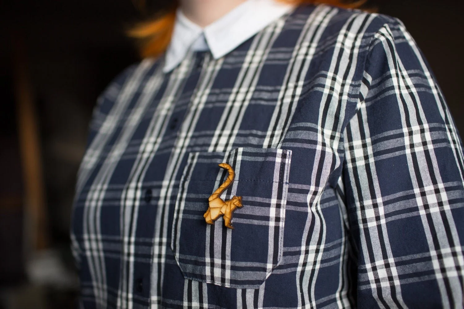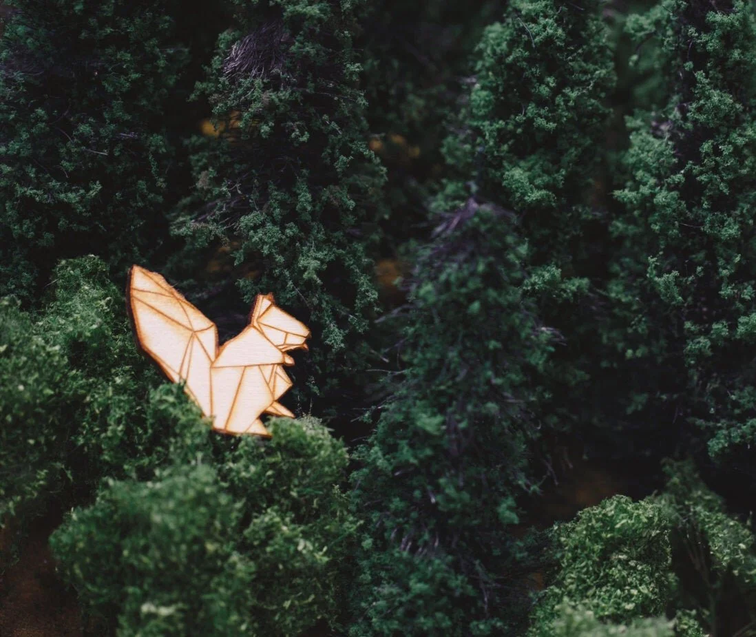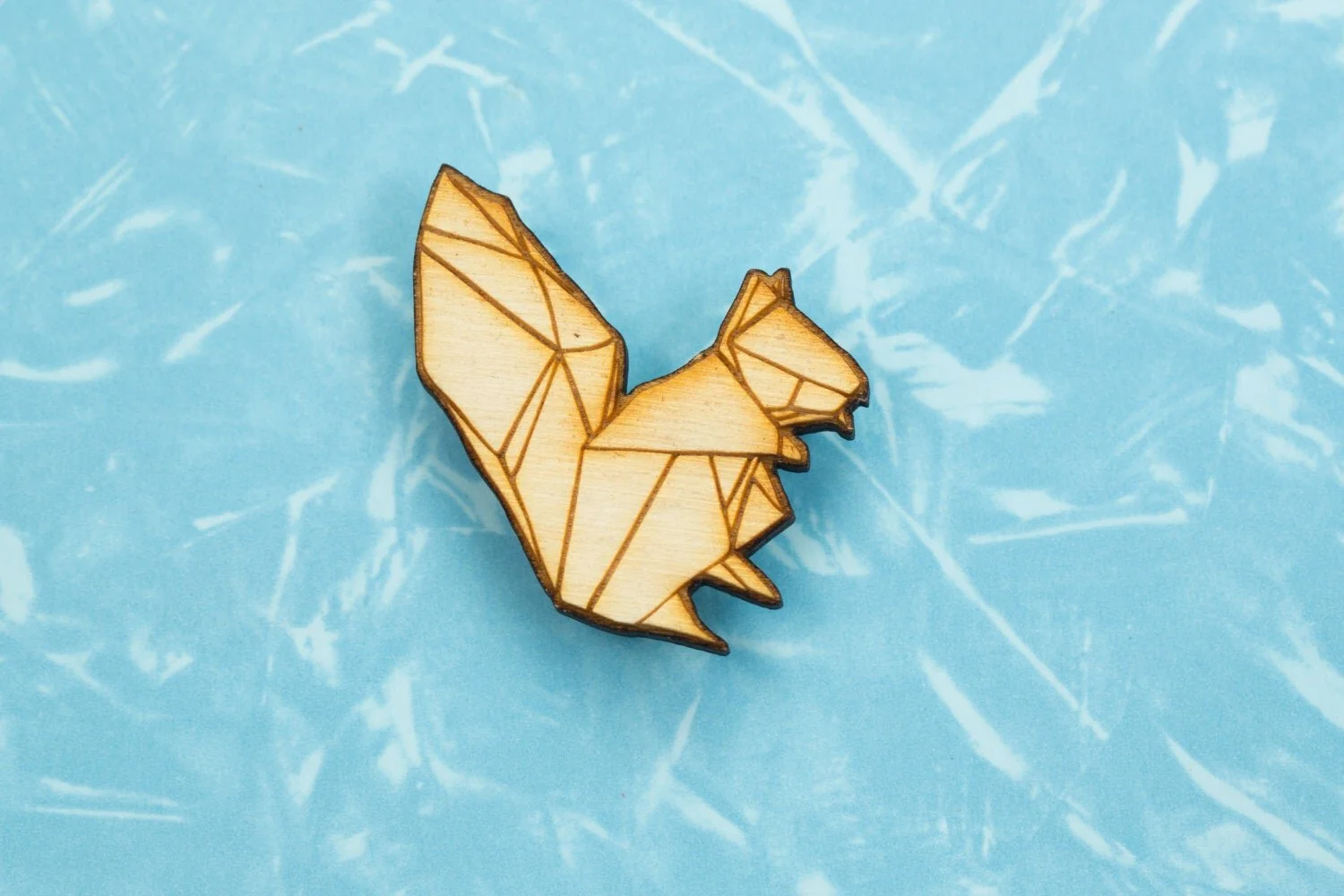 Origami Squirrel pin badge for fans of Japanese Culture, paper folding and a nostalgia for woodland childhood stories.