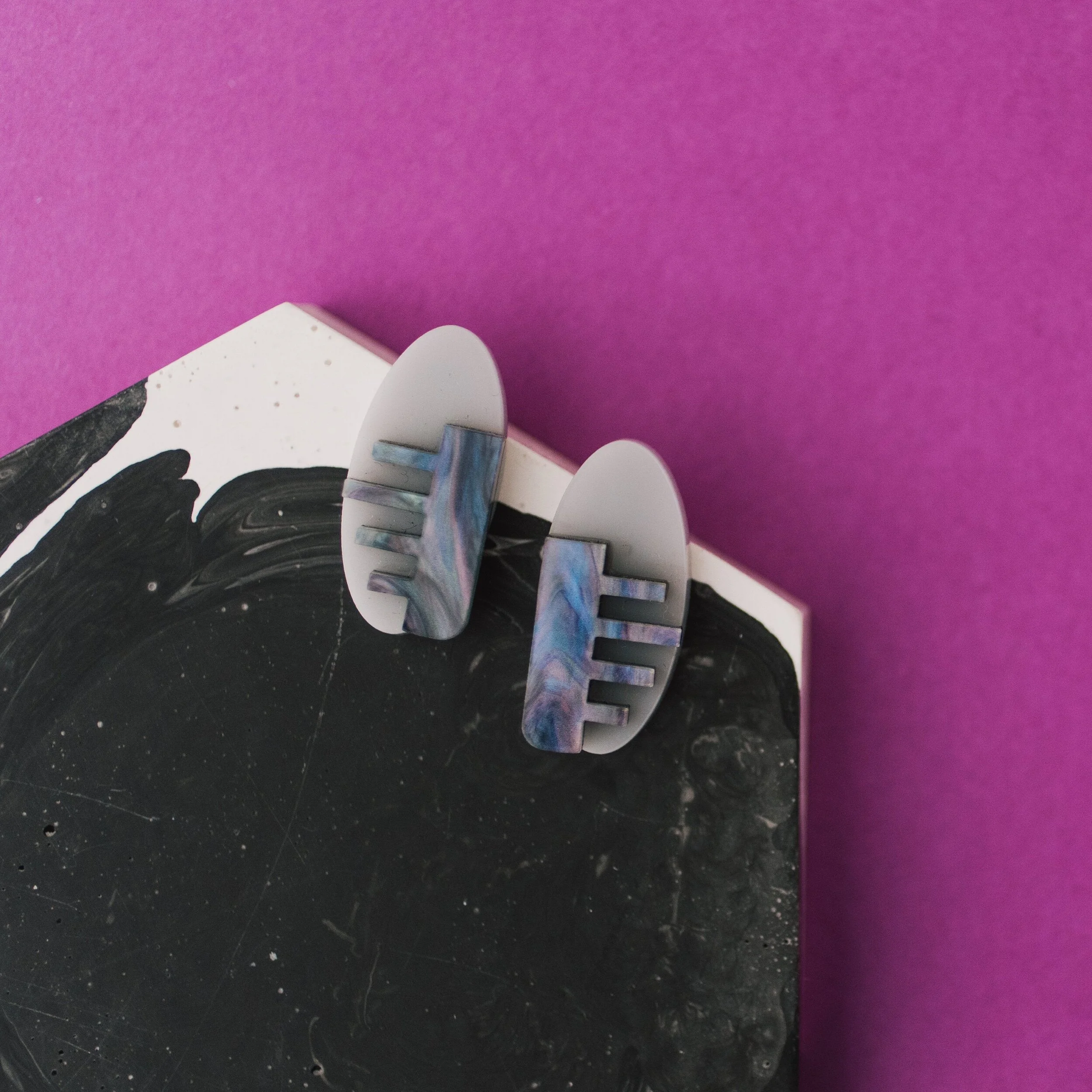 Oval Geometric Statement Earrings- Laser cut Art Deco earrings - acrylic studs - mirror studs