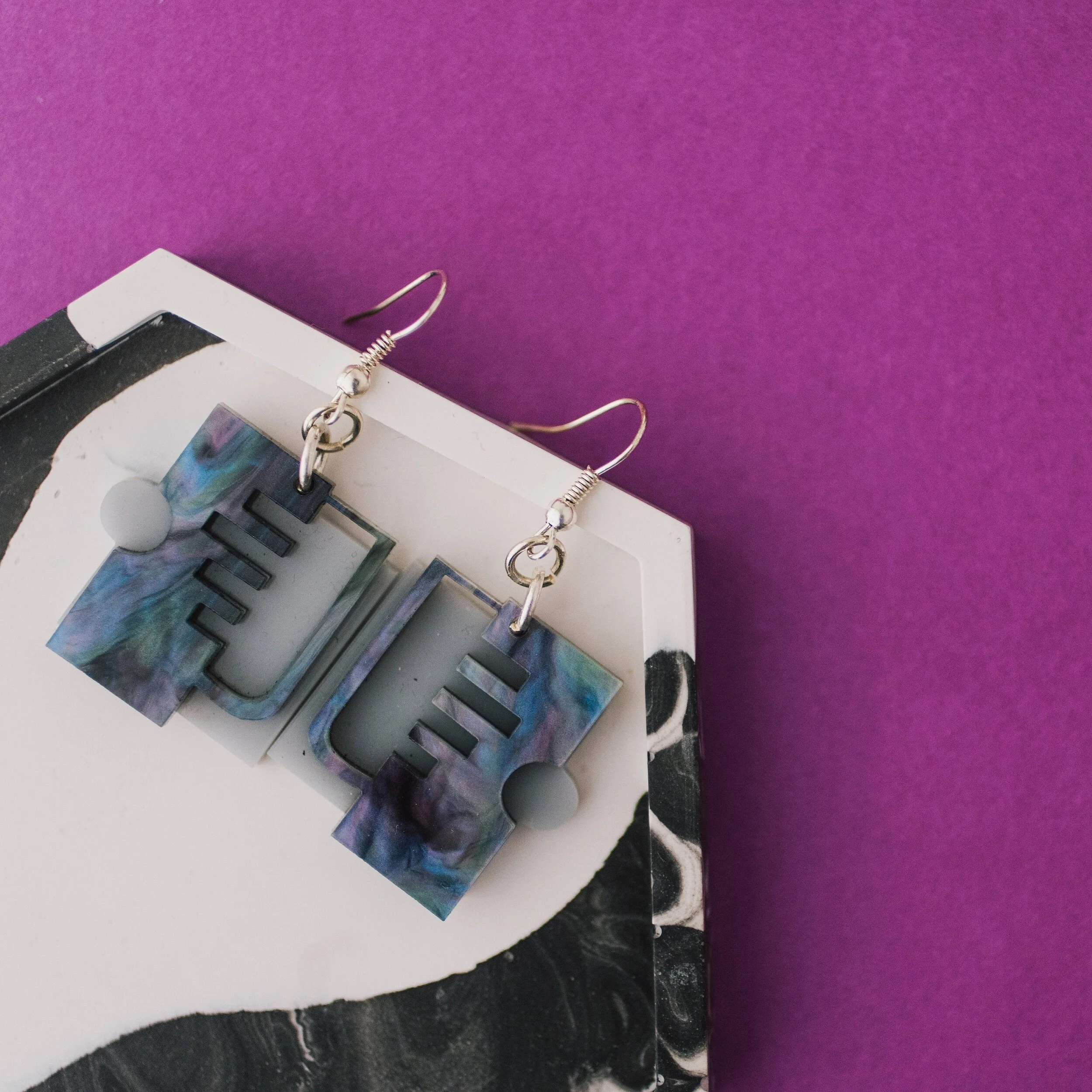 These geometric art deco style stud earrings are inspired by the most fabulous vintage carpet at the Albert Hall, Manchester.