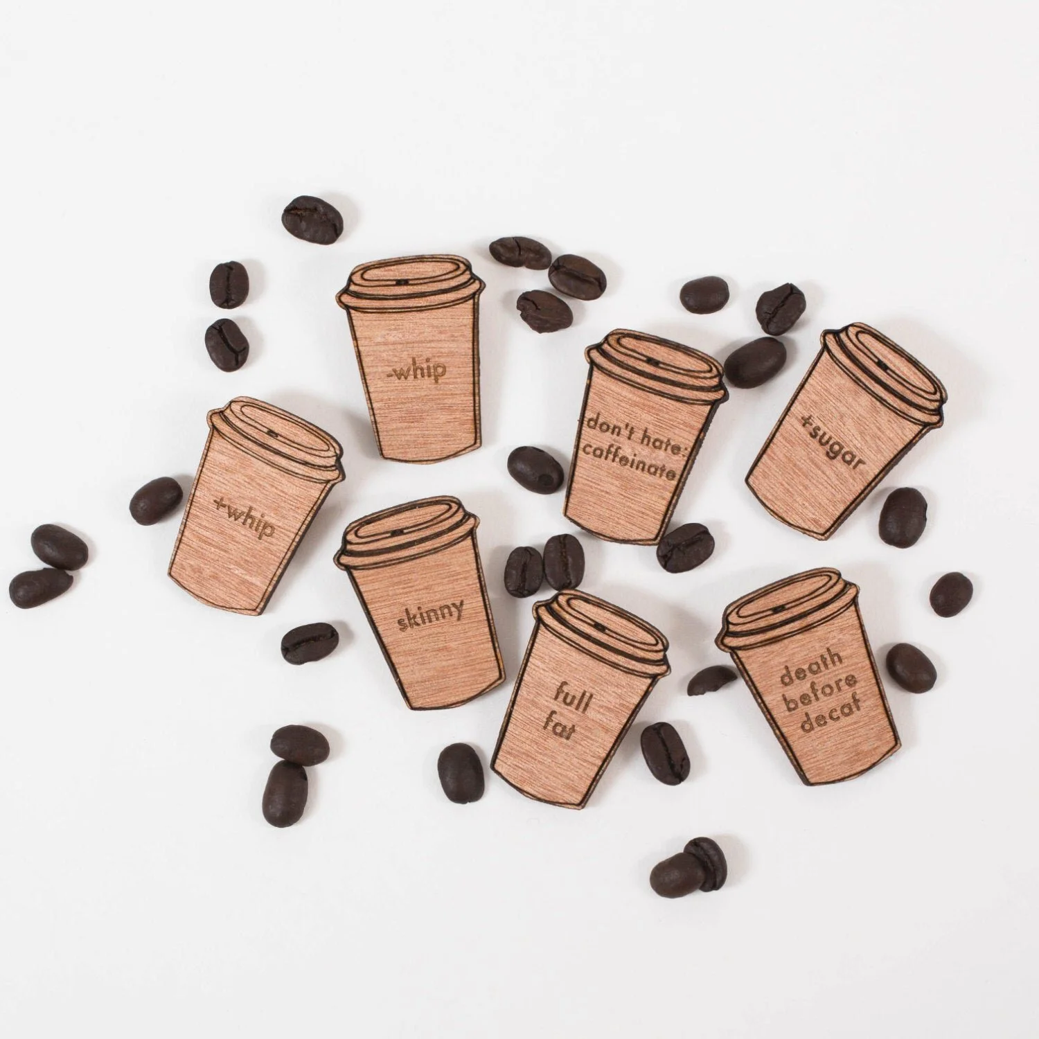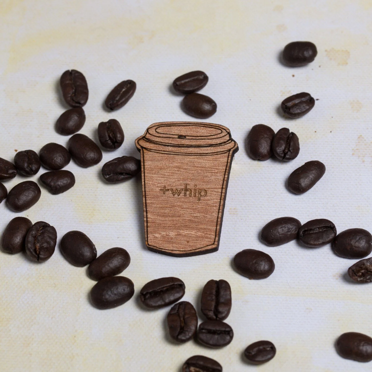 With Whip COFFEE Cup pin badge/ brooch ~ for coffee addicts, snobs, coffee gift, whip fetish, coffee jewellery, coffee jewelry, quote