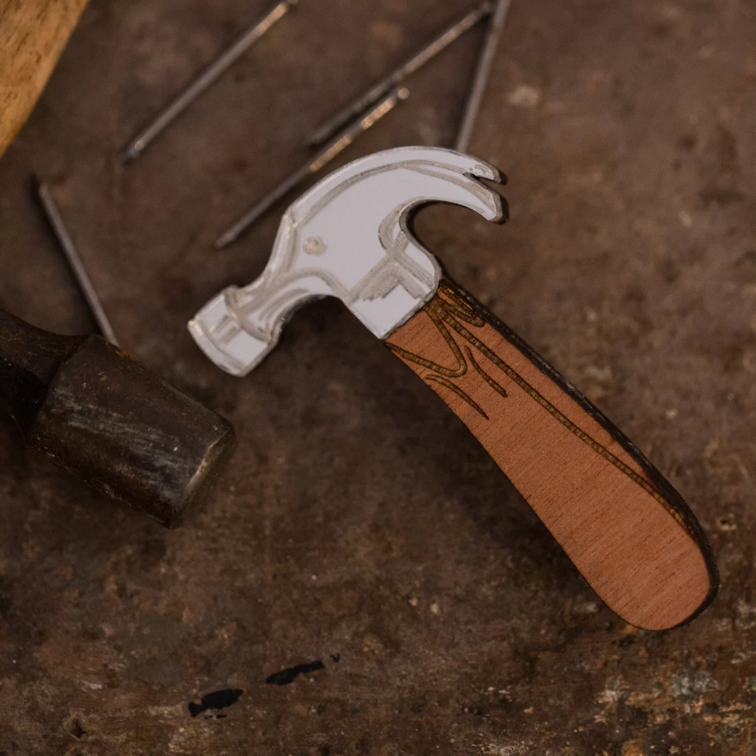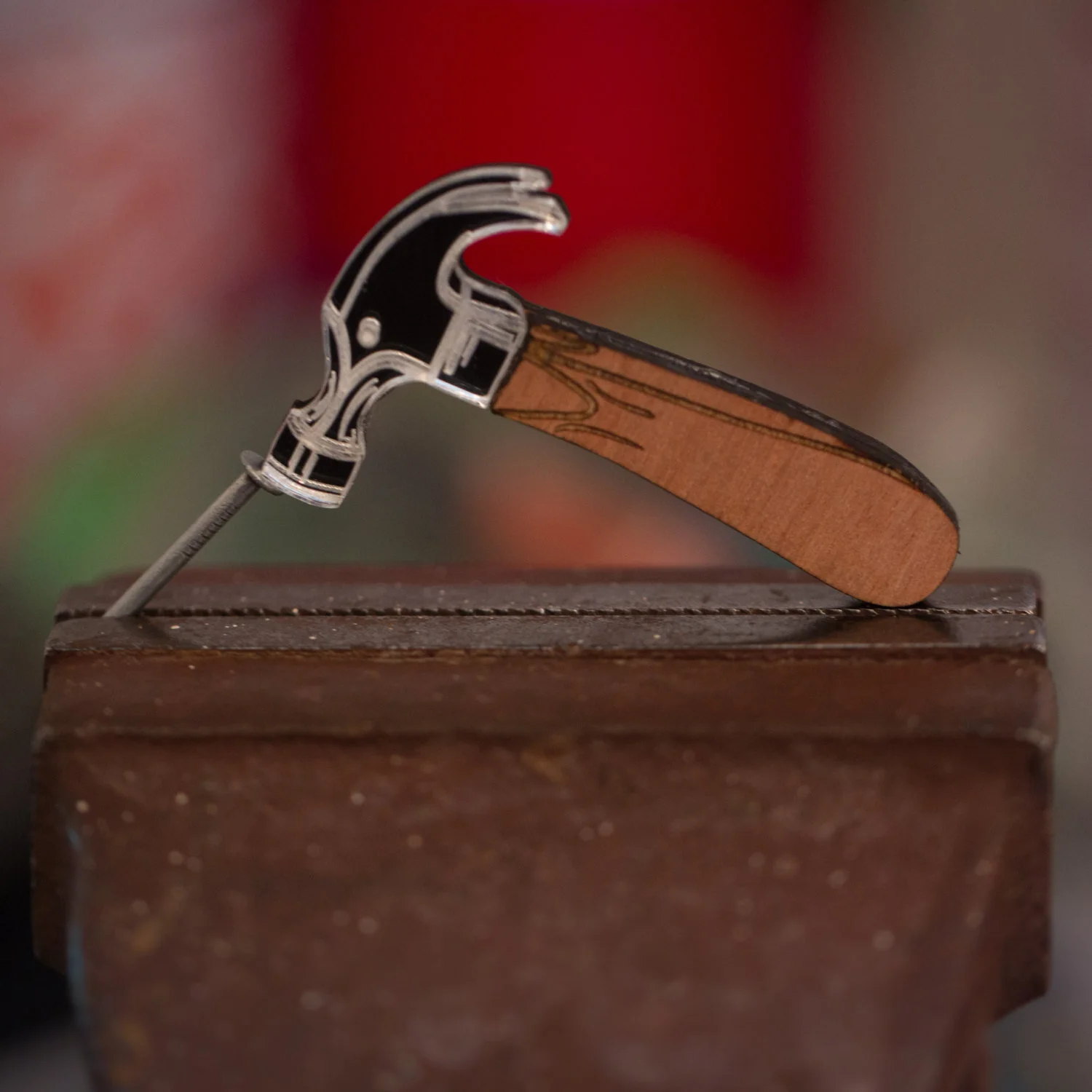 Hammer brooch, tools pin badge perfect for father's day, carpenters, lumberjacks, builders